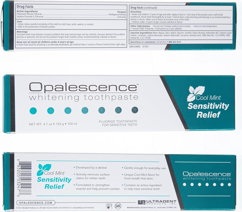 - تبييض الأسنان الحساسة: يحتوي على نترات البوتاسيوم ذات القوة القصوى للمساعدة في تخفيف حساسية الأسنان