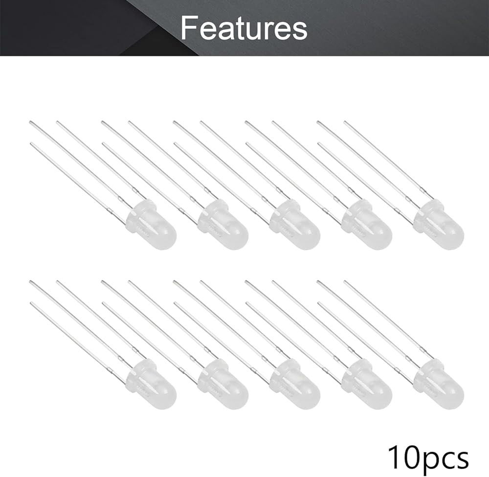 10Pcs 5mm Red & Green LED Lights, Round Bi-Color LED Diodes Common Cathode, White Lens, 3 Pin RGB Electronics Components Lighting Bulb Lamps, 20MA 1.8-3.4V, Luminous Angle/Flux 30°/10lm