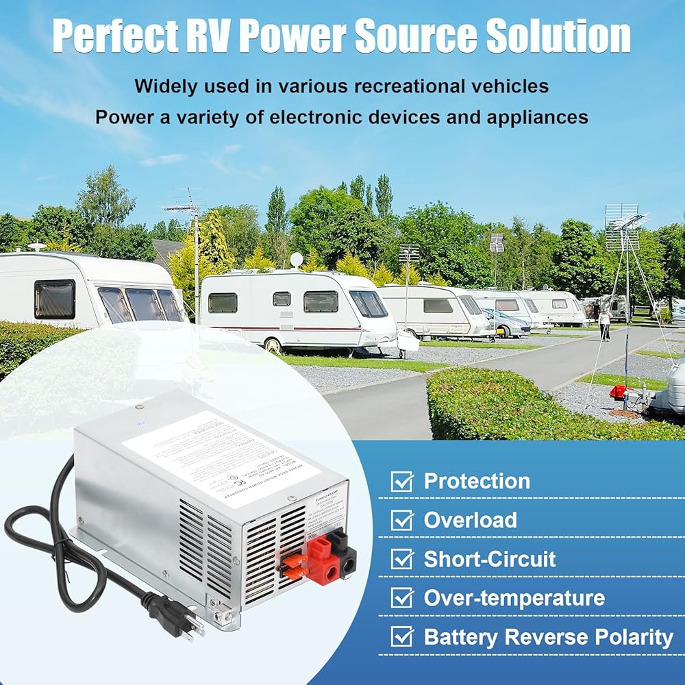 【RV Power Converter/Chargers with Perfect Design】Quiet operation is assured as the cooling fan runs only when needed. Electronic current limiting automatically shuts down the power during overload or short-circuit conditions. Will not cause interference with televisions, radios, or other signals. Lithium-ion switch to change charging modes between lead-acid and lithium batteries. High-temperature-resistant circuit board and a unique capacitor design, which increases charging speed by 30%.