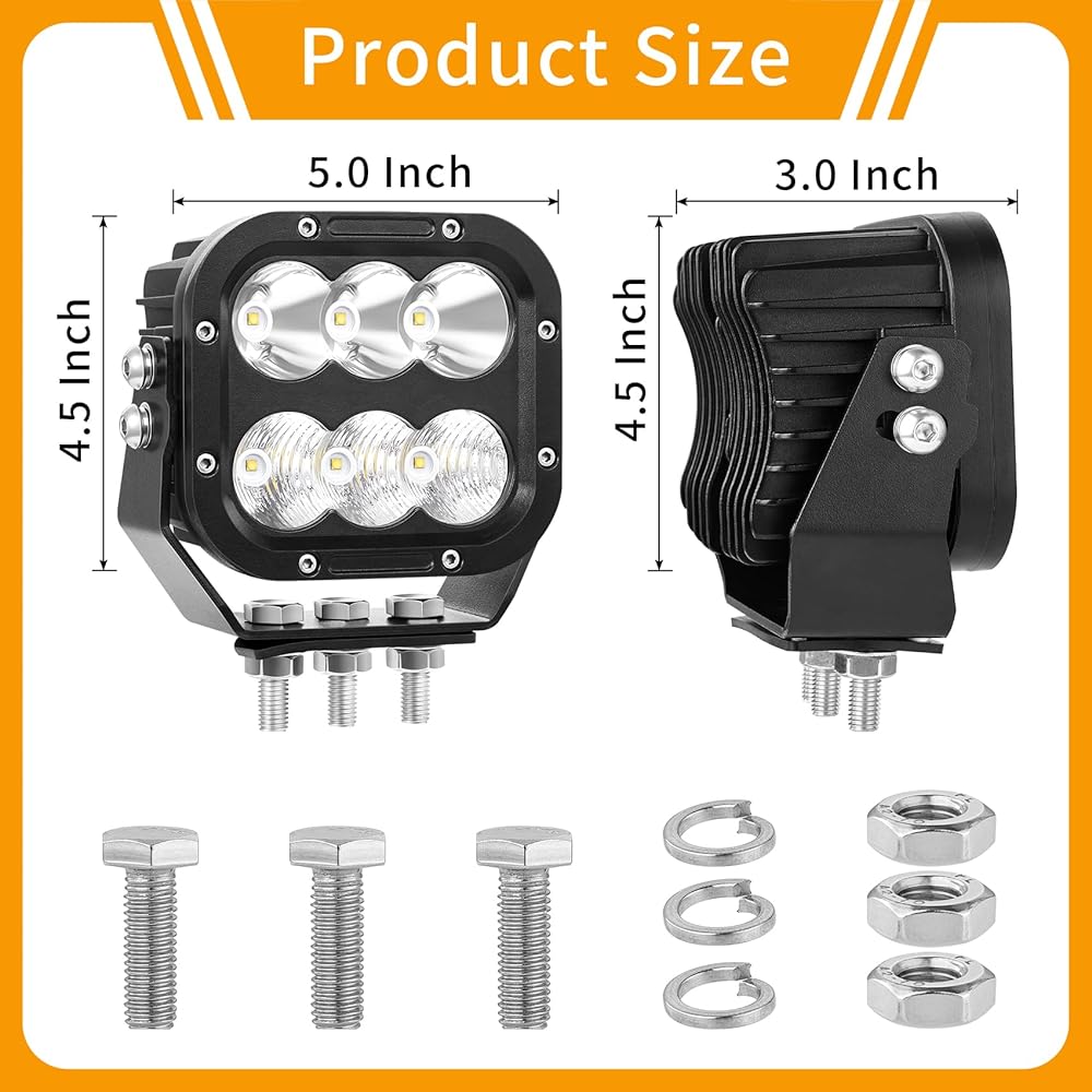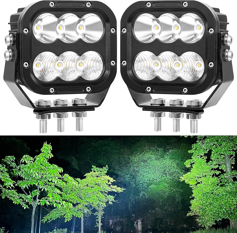 LED Off Road Lights, LED Driving Pod Lights 120W 10000lm IP68 Ultra Bright Square Combo Beam for Car Boat ATV UTV RV Golf Cart Pickup Tractor Work Lights 12V 24V, Pair