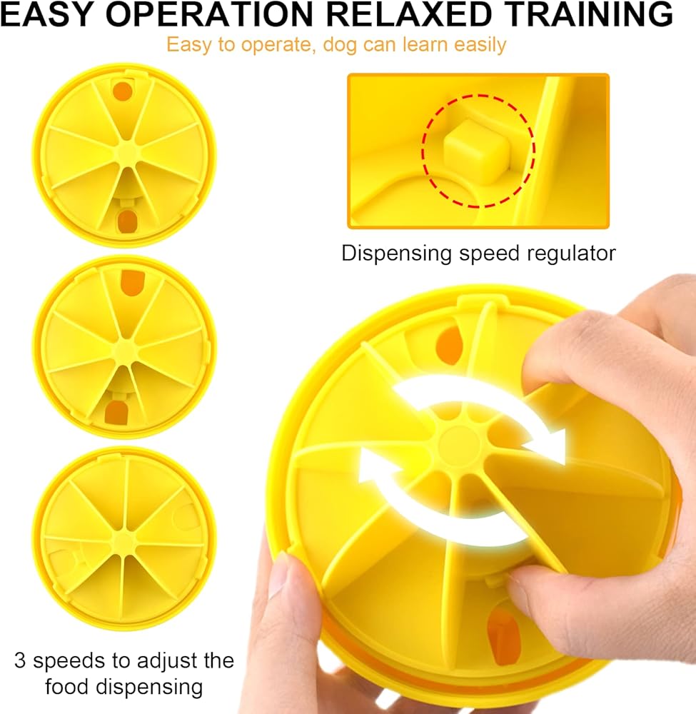 Three-speed food dispensing : Designed with three different sizes of food dispensing holes, compatible with most pet food on the market. The speed can be adjusted by rotating the internal dial.