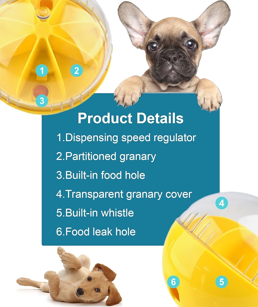 Funny treat dispensing dog toys: This ball allows dogs and cats to hear, see, smell, and find food treats. Reduces their mischievous behavior and provides lasting entertainment.