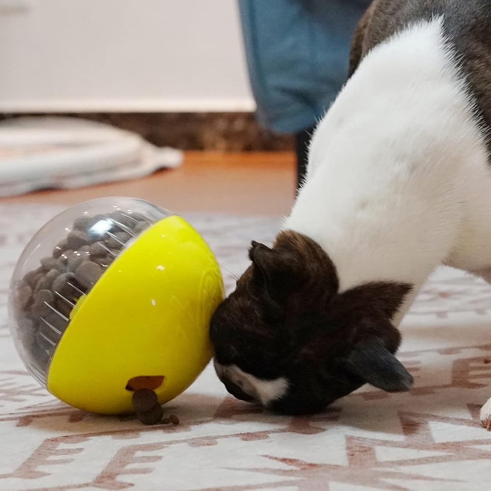 Improve IQ: Cats dogs feeder toy can help pets increases IQ and mental stimulation. Your pet will become smarter when playing with this interactive dog toy ball, and learn how to roll it to make snacks fall.