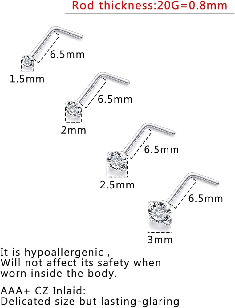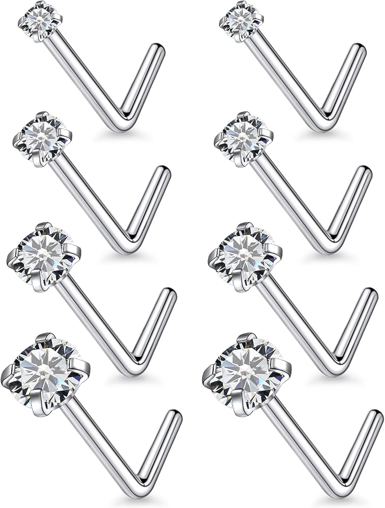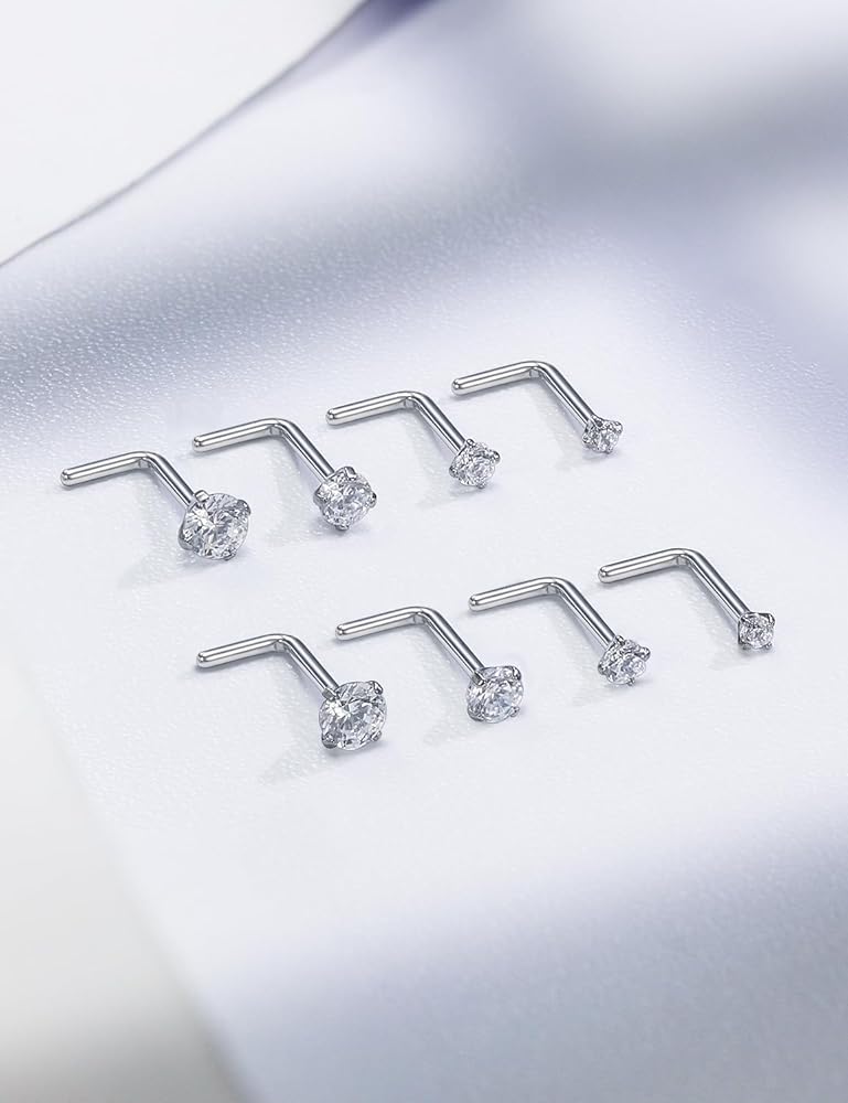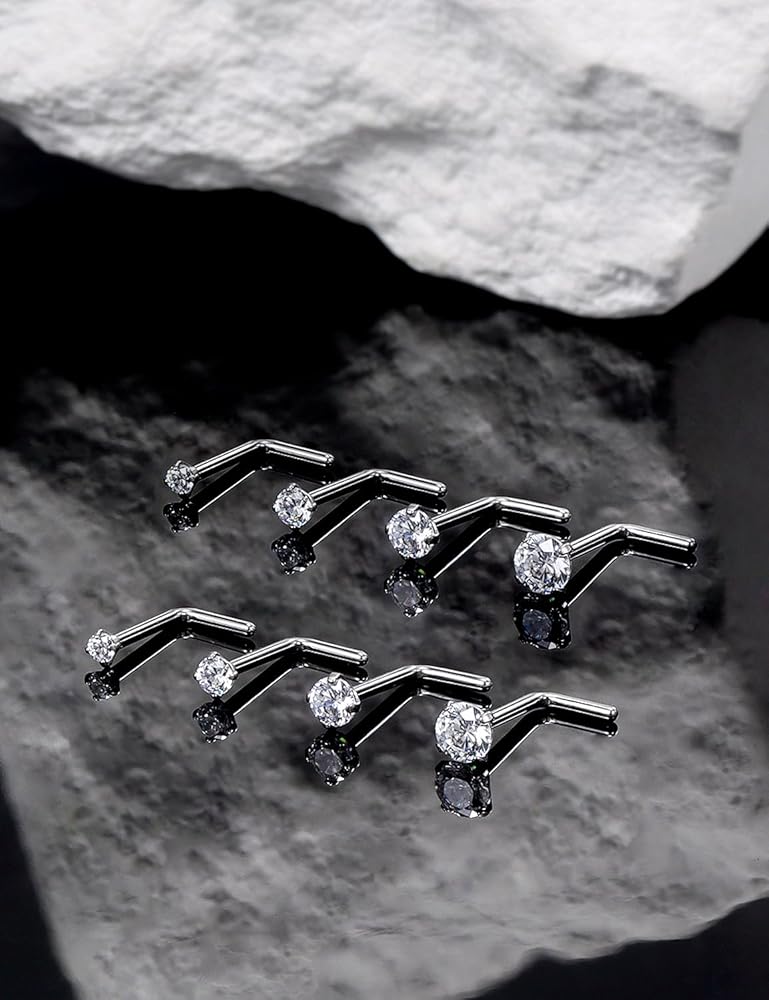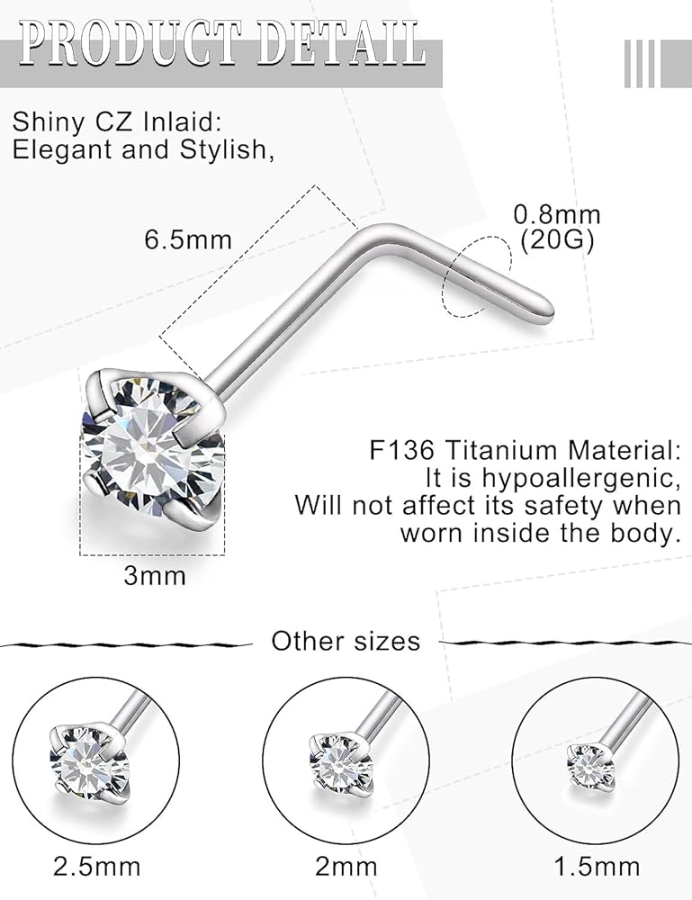 8PCS Titanium Nose RINGS Studs: 2PCS Nose Stud Top Diamond CZ 1.5mm;2PCS Nose Stud Top Diamond CZ 2mm;2PCS Nose Stud Top Diamond CZ 2.5mm;2PCS Nose Rings Stud Top Diamond CZ 3mm.Give You Mutiply Wearring Outfit, Reasonable Price for Body Jewelry, Deserve to Purchase.
