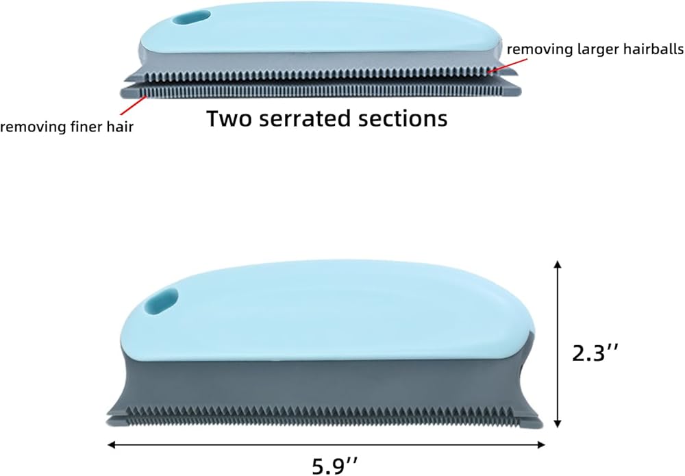 Clever design: The brush head is divided into two serrated sections, one with larger teeth and gaps for removing larger hairballs, and the other with smaller teeth and gaps for removing finer hair