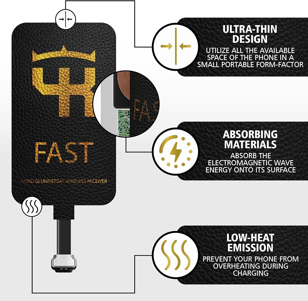 ☑️ SIMPLE SETUP, FAST CHARGING: Experience quick and easy installation. Just plug it into your phone and place it on any Qi charger. Our receiver ensures a reliable and efficient charge, so you can power up your device faster than ever before.