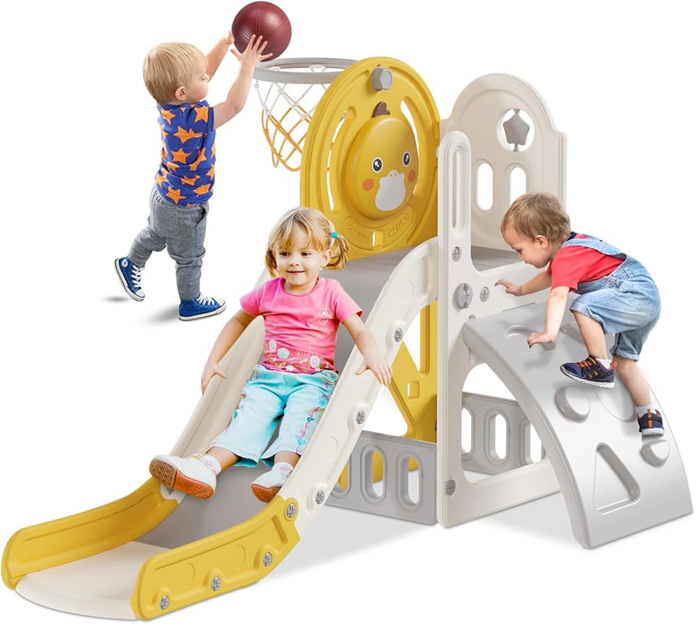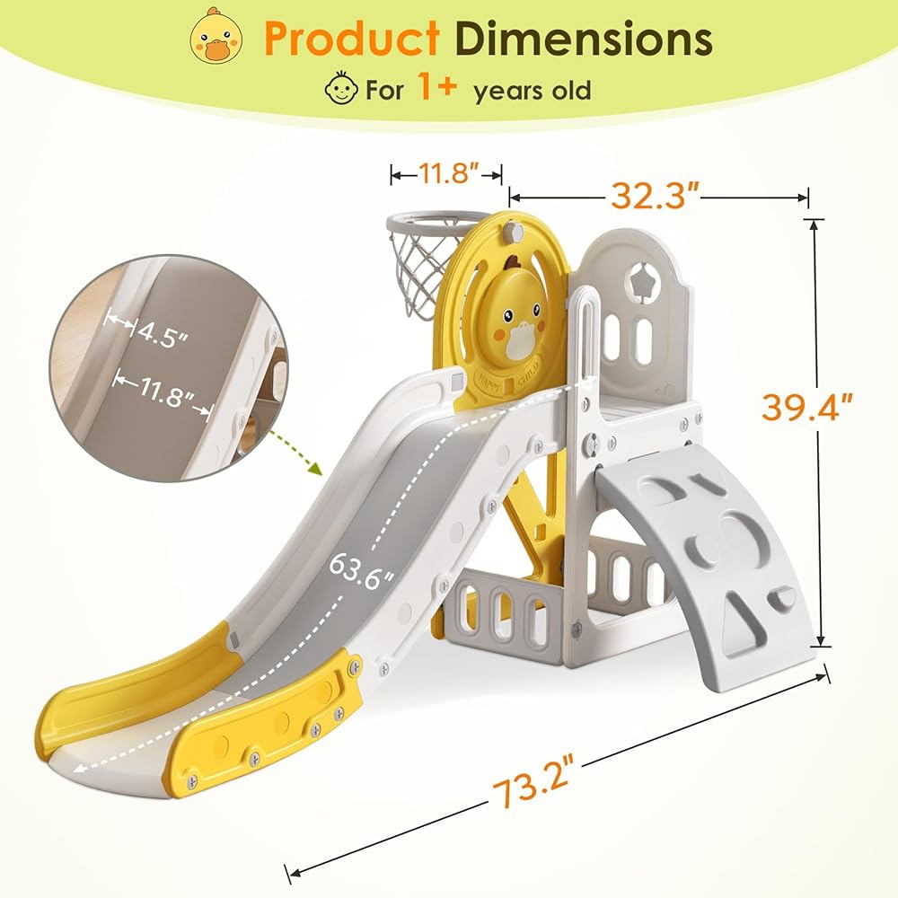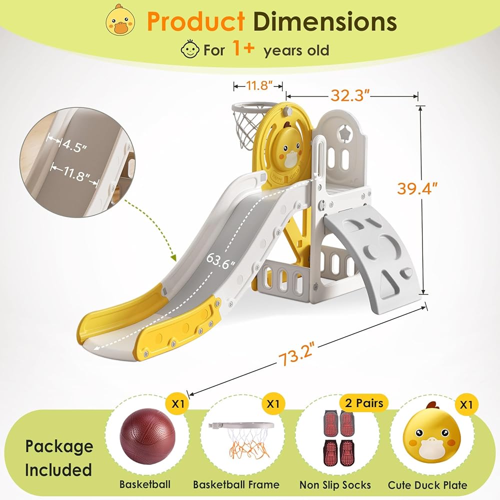 🎁 AFTER SALES SERVICE - This product contains: slide, basketball, user manual, 2 pack anti slip socks and basketball hoop. The toddler slide is the perfect gift for toddler 1-3 years old. We are committed to providing 24 hours customer service. free returns!