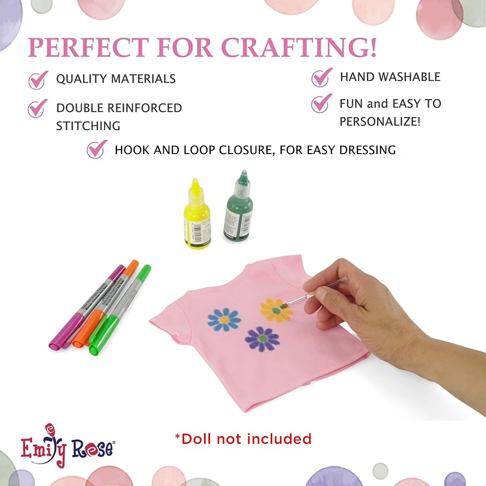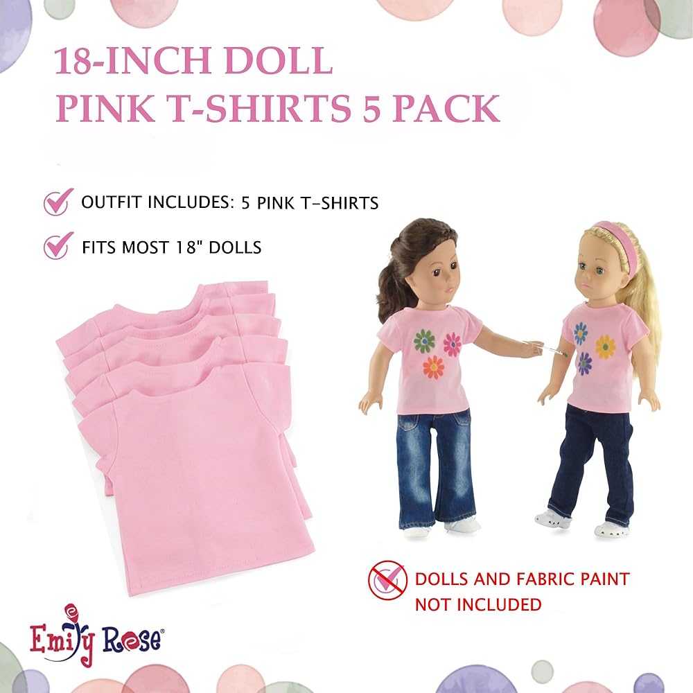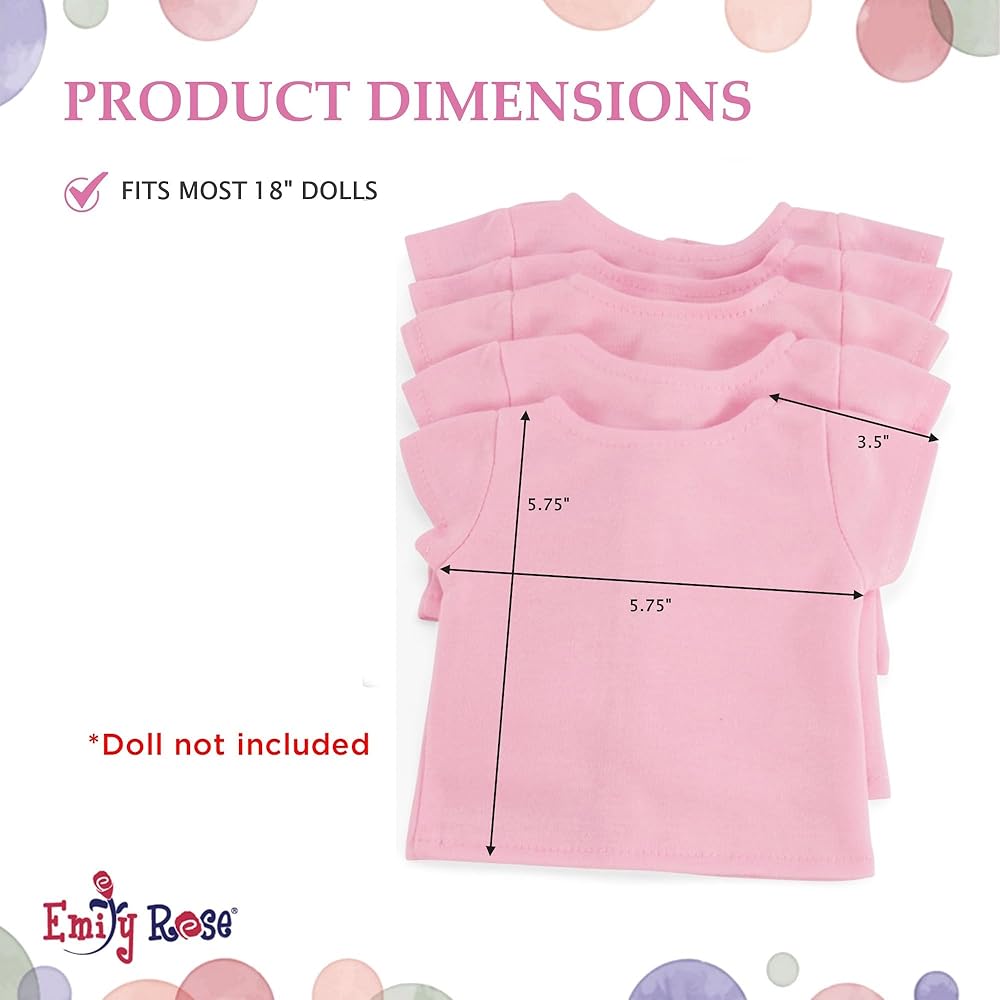 Emily Rose 5-Pack Pink 18 Inch Doll T-Shirts Gift Boxed | USA Brand – Fits American Girl & Our Generation Dolls – for DIY Crafts, Tie Dye Sublimation & More, Custom Doll Clothes, Birthday Favors