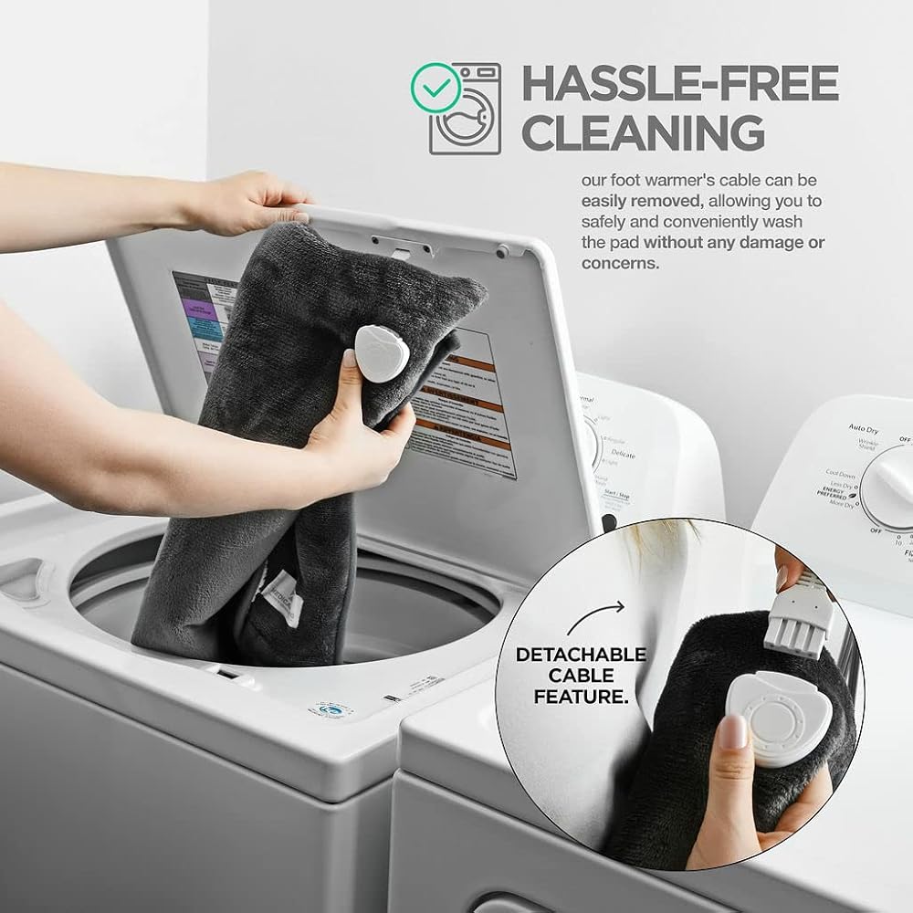 Relax your aching joints and muscles anytime, anywhere. Our foot heating pad is lightweight and portable so you can use it while reclining in your bed or sitting on your chair in your office. The controller is removable which makes it convenient when it's time to wash the foot warmer.