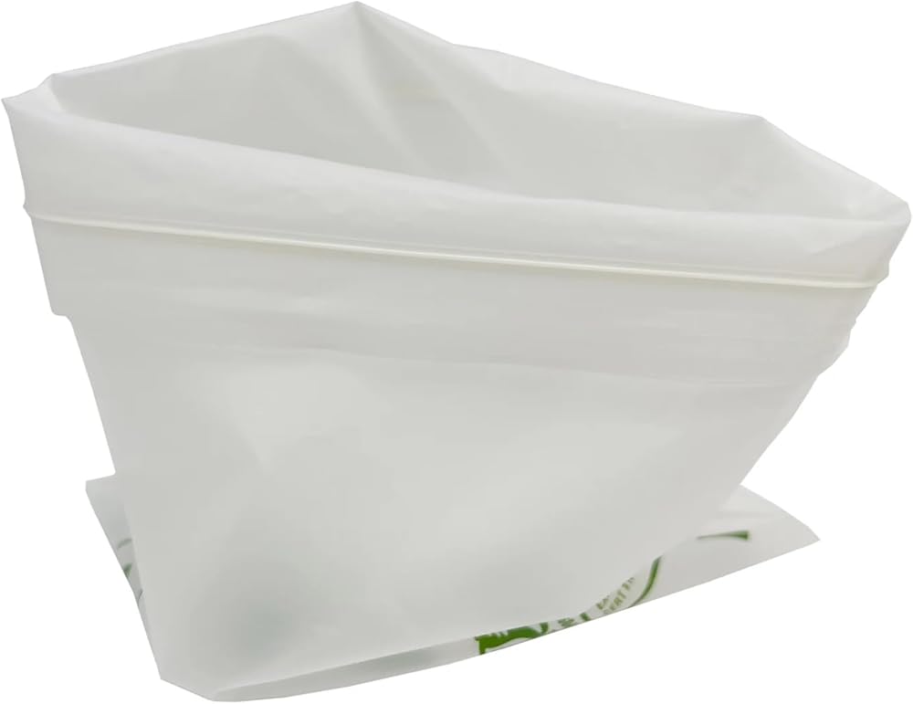 USAGE & STORAGE: Not recommended for use in microwave or for storing liquids. Bags are made of plant-base material, which may not be suitable for long-time storage. Avoid excessive heat; store Compostable Bags in a cool, dry place and use within one year of purchase. Purchase only as many as you can use in 9 months.