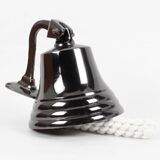 MATERIAL: This solid aluminum bell is made of high-quality aluminum, which is sturdy and durable metal alloy that is resistant to corrosion and has a bright antique copper color. Its Classic & Elegant design creates sound through spring/clapper with a metal ball inside gives off a crisp & loud sound.