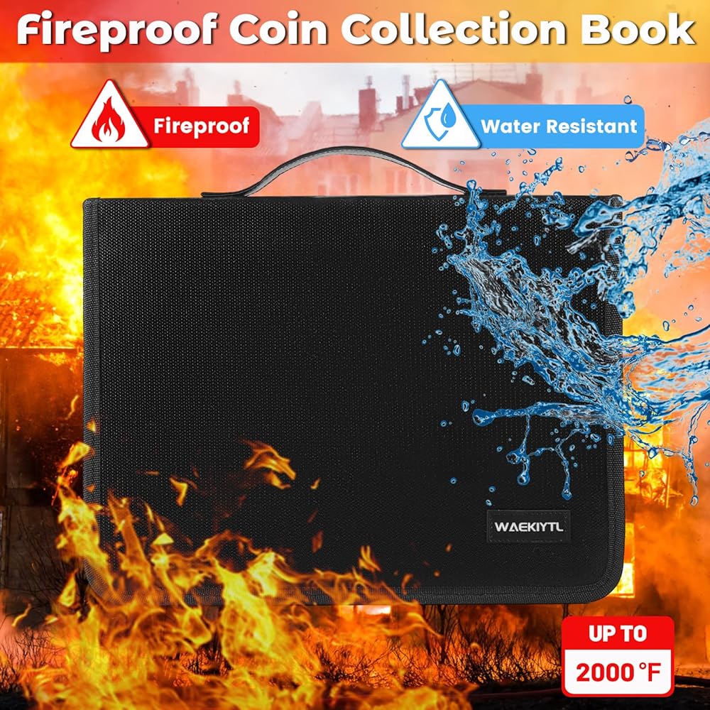 【Fireproof & Water-resistant】Our coin collector albums are made of double-layered non-itchy silicone coated fiberglass which stands up the temperature to 2000℉. The coin collection book is not only fireproof but also high water resistant in case it gets wet for any reason, which keeps your valuables dry, clean and protected in any fire accident