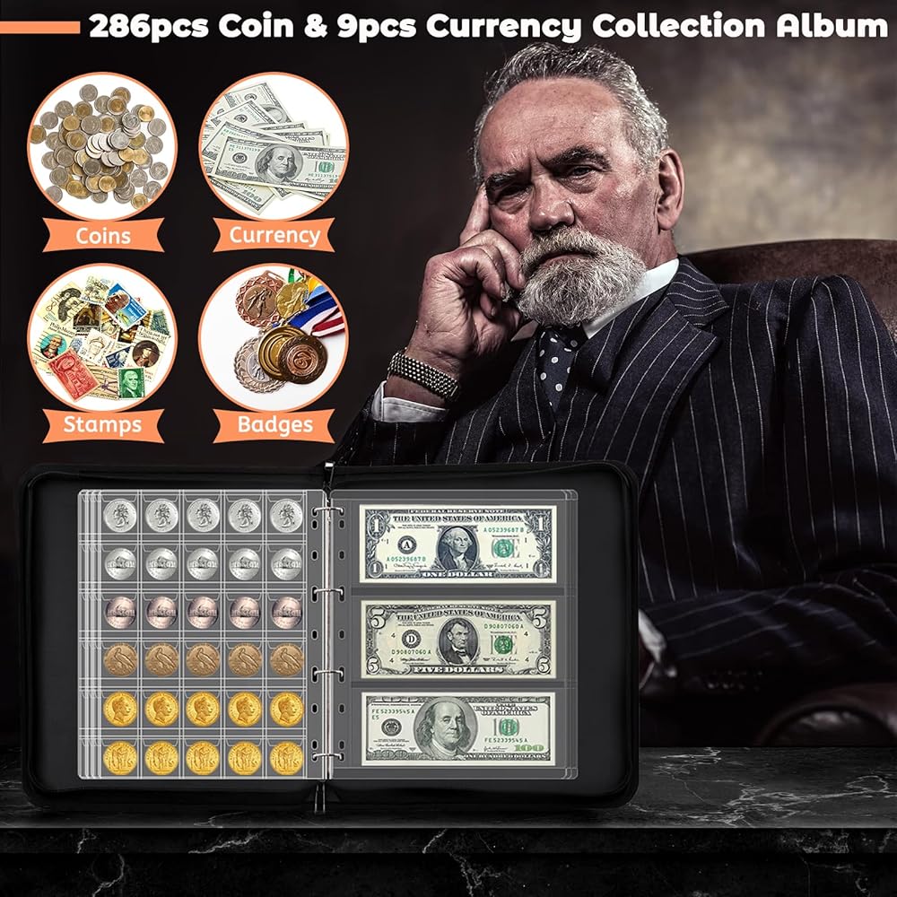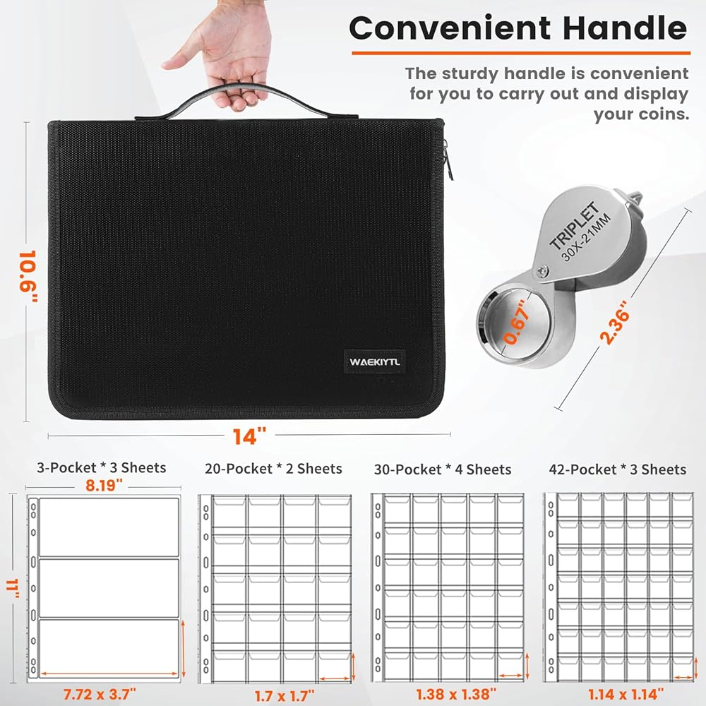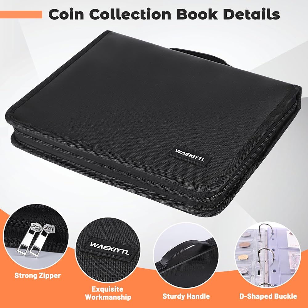 【Personalized Upgrade Design of Coin Collecting Books & Anti-static】Coin albums for collectors come with Superior stainless steel page holder binder, which is easy for you to remove or add the coin sheets sleeves on it, with smooth zipper is nice zippered to keep everything secure, strong and sturdy handle easy to move and travel with. Comes with different coin pages and currency pages to meet various collection of world coin and paper money