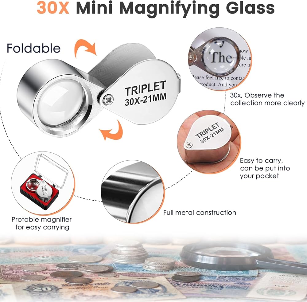 【Nice Gift for Coin Collectors】The coin holder for collectors is suitable for collecting banknotes, tokens, medals, coins, stamps, etc. Comes with a portable high-definition 30 times magnifying glass, you can clearly view the pattern. Wonderful way to store and display your collection. It must be a nice present for beginner coin collector, Currency collector or professional numismatist