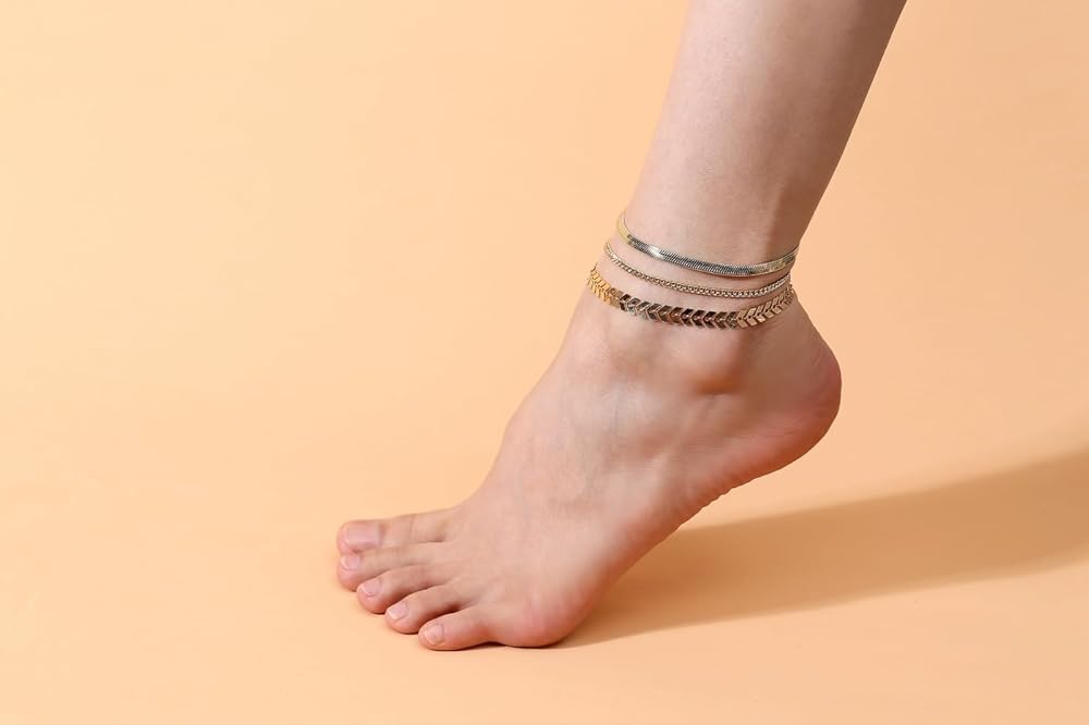 [Gold Anklets for Women]: Our golden anklet set is made of 14k real gold plated, high quality, not easy to rust, good gloss, not easy to fade, suitable for sensitive skin.