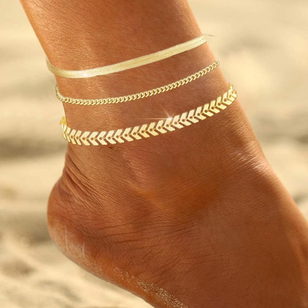 [Women's Summer Jewelry]: Do you want to add a pair of gold jewelry for summer occasions such as going to the beach, swimming pool, dating? This anklets for women waterproof set can satisfy you! The perfect match of simple style, suitable for any style of clothes, making you stand out in the crowd!