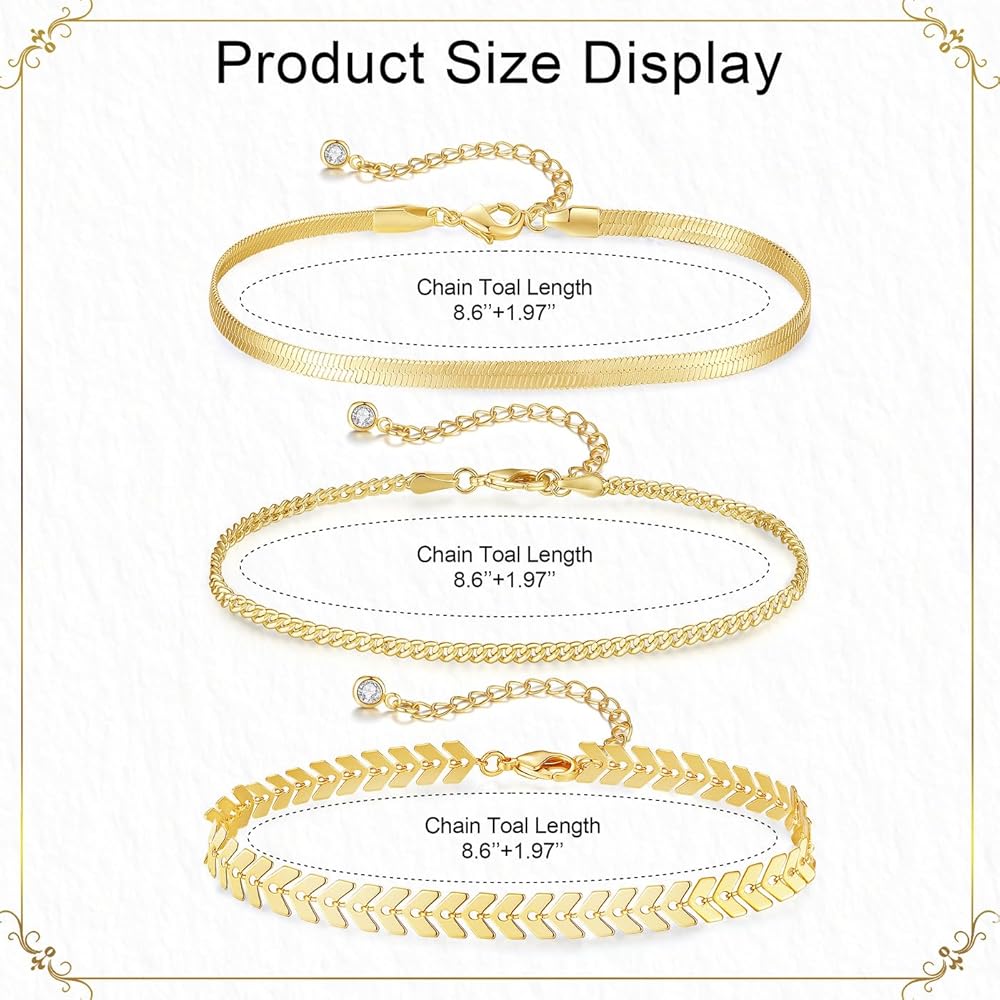 [Adjustable Anklet Design]: In style, we have fine design for you, so that each gold anklet is adjustable, the total length is 8.6"+1.97"(adjustable), so you don't have to worry about the size!