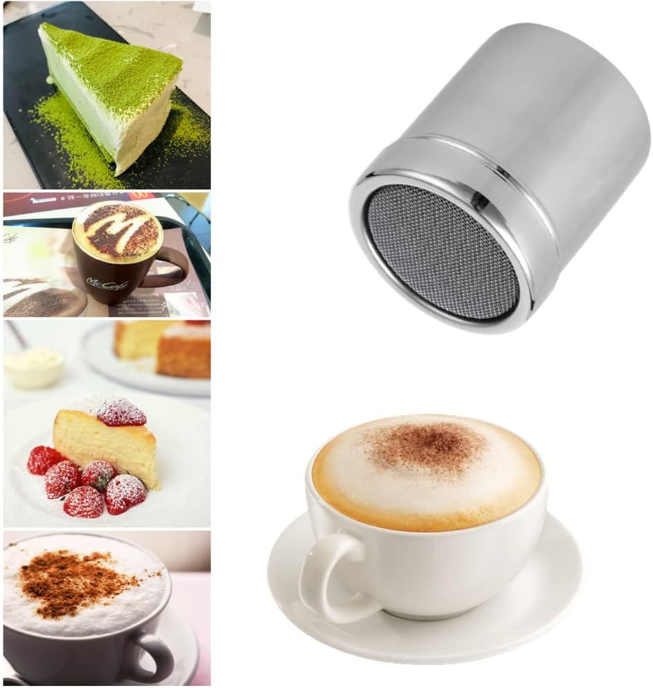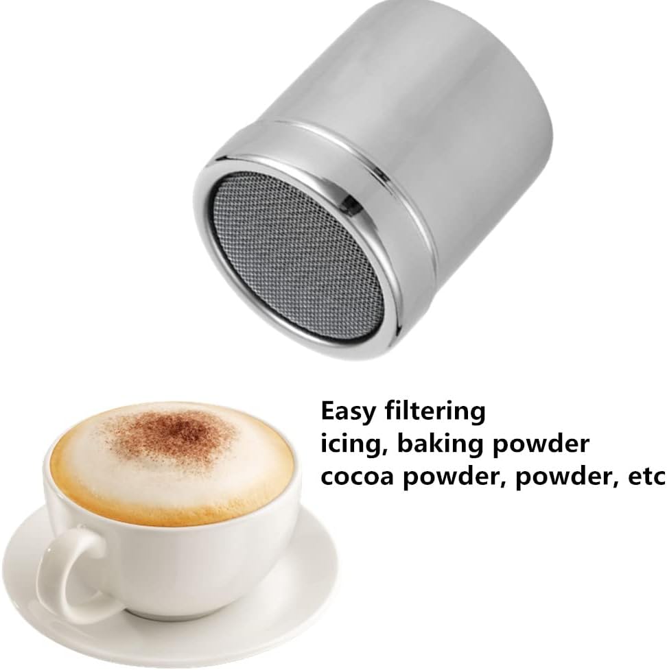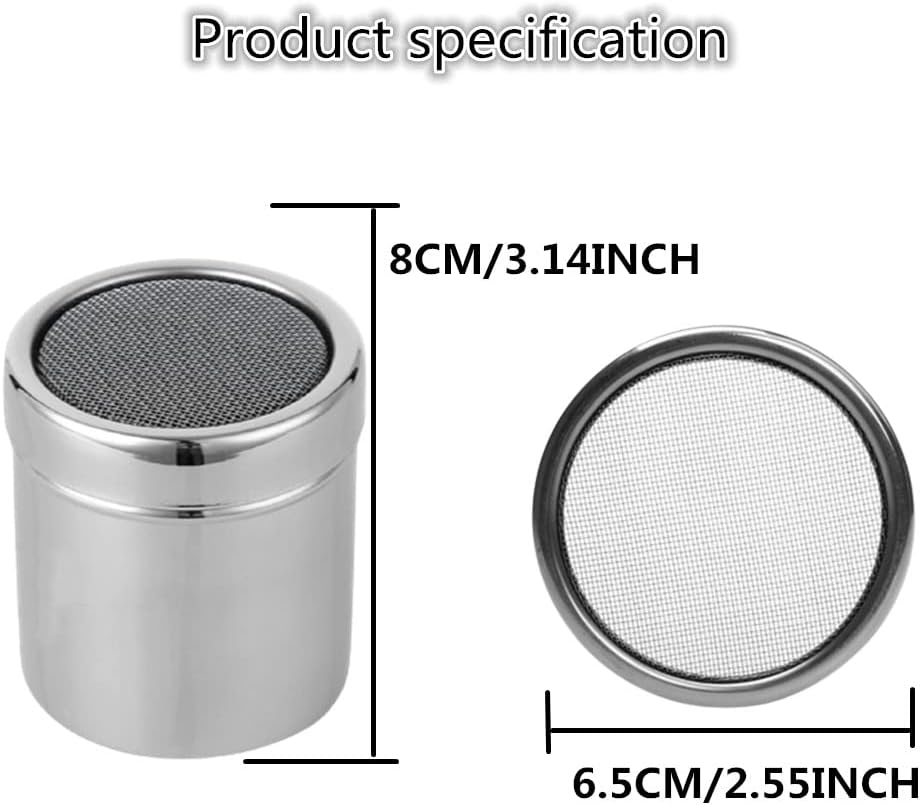 Powdered sugar shaker with lid stainless steel powder shaker mesh shaker Powder jar for salt cinnamon sugar powder cocoa chocolate coffee filter cappuccino