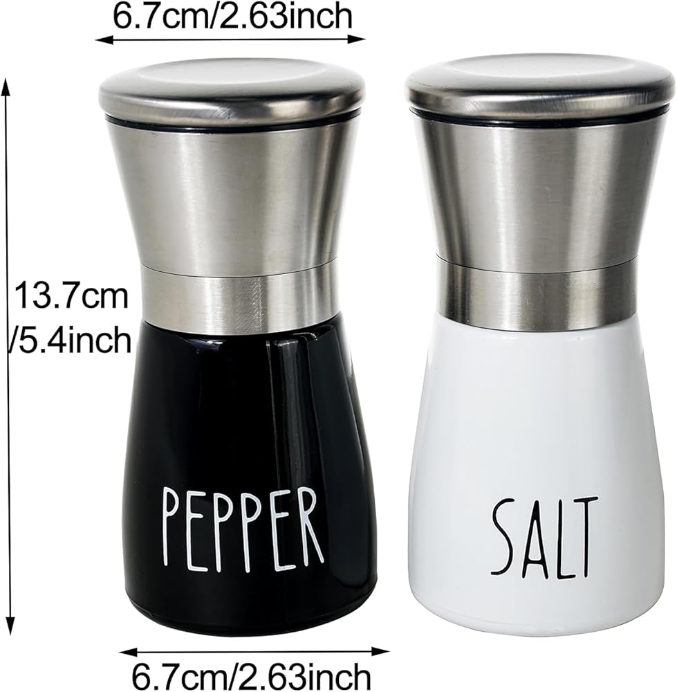 2PCS Salt and Pepper Grinder Set, Black and White Original Salt and Pepper Grinder Set - Adjustable Sea Salt Grinder & Pepper Grinder - Stainless Steel & Glass Salt and Pepper Shakers 2pack