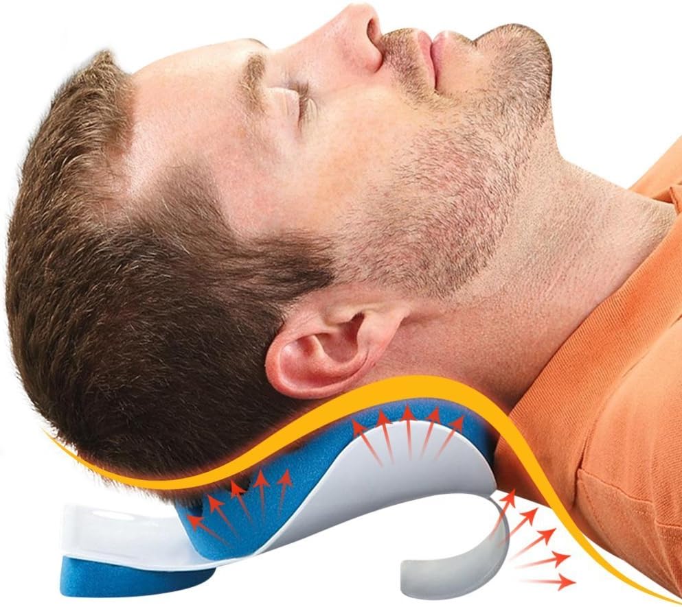 Deep relaxation. The smooth, gentle pressure and constant support of this neck hump corrector device will give you instant relief and relaxation for the sore muscles in your neck, shoulders and back. With your neck traction pillow you can get rid of TMJ, tension headache relief, neck tension relief and hunchback.