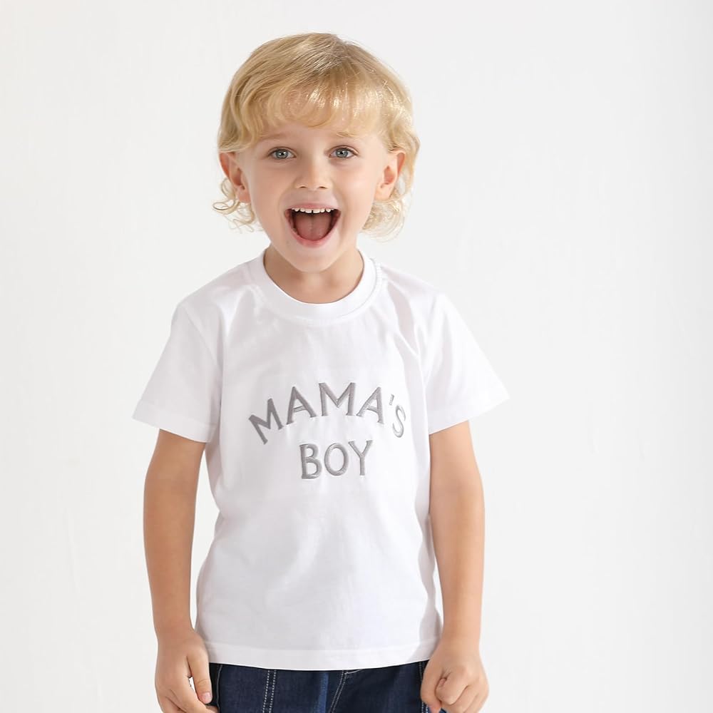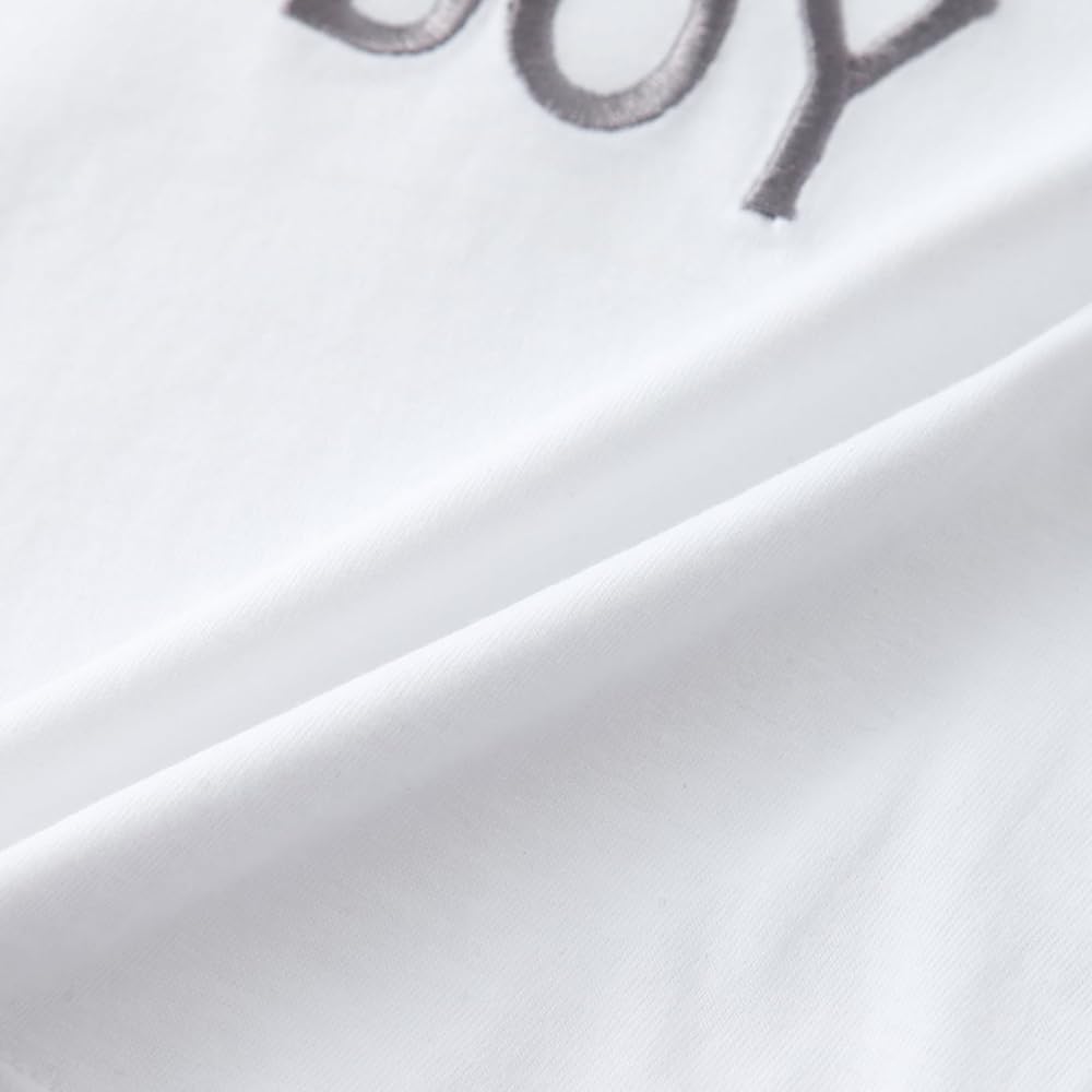 ⭐Unique Embroidery Design: This baby boy t-shirt boasts meticulous craftsmanship, featuring finely embroidered letters adorning the chest. Enhanced with an inner fabric patch for added comfort, it exudes both style and durability. Available in two sophisticated color options: crisp white toddler boy tshirt and deep blue baby boy tshirt.