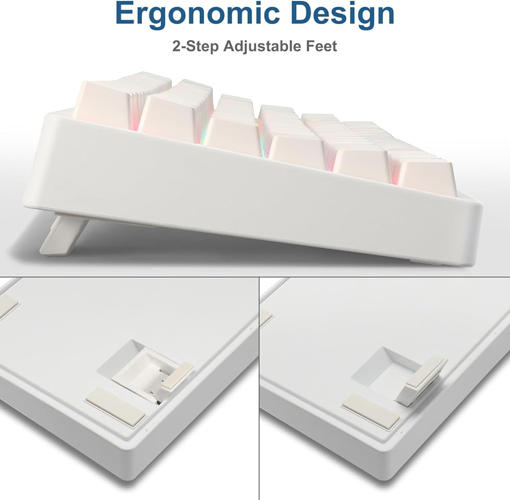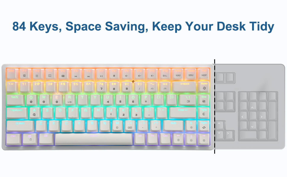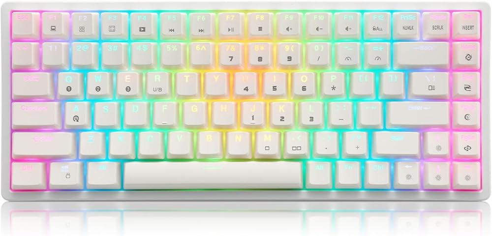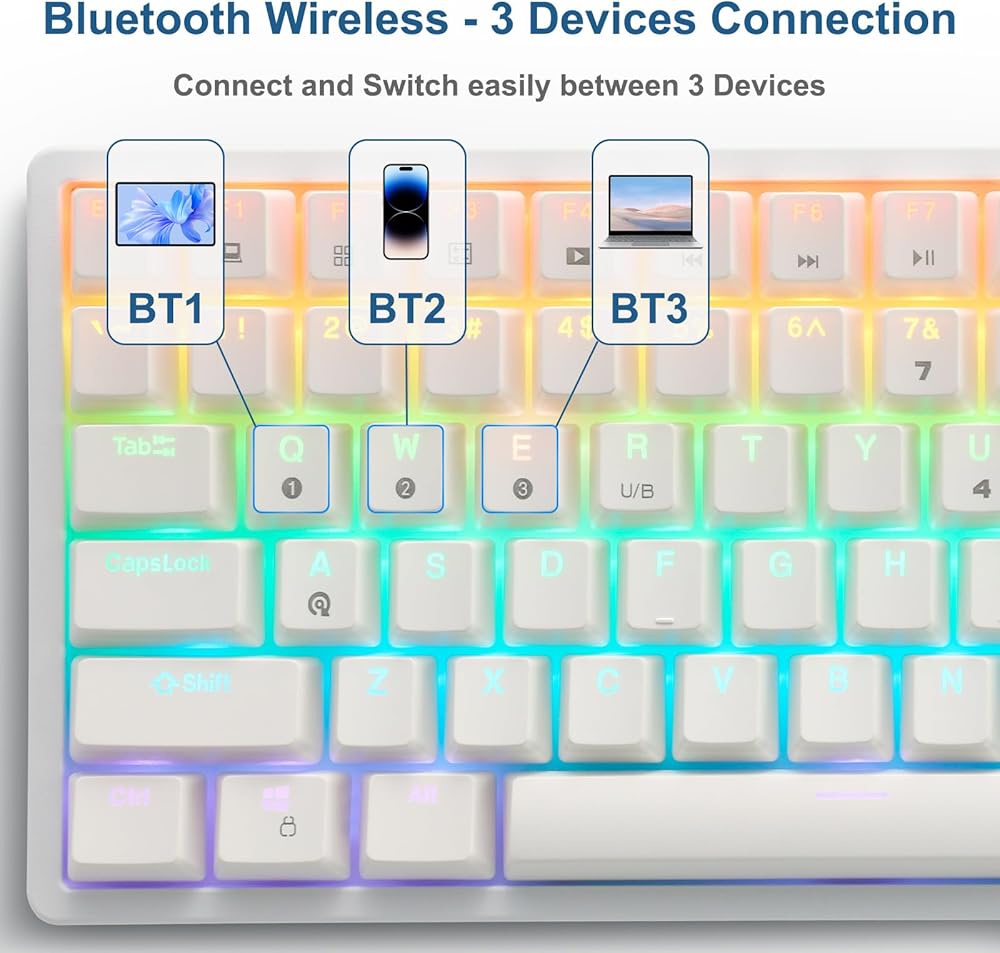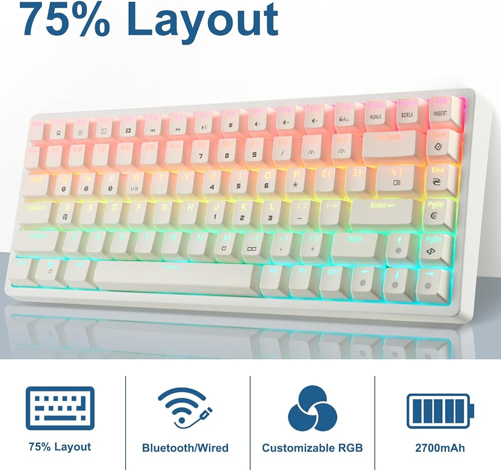 HUO JI Wireless Mechanical Gaming Keyboard, Programmable RGB Backlit, Bluetooth 5.0, Blue Switches, 84 Keys, Wired 75% Keyboard for iPad, iMac Android/Windows Tablet Laptop Desktop, White