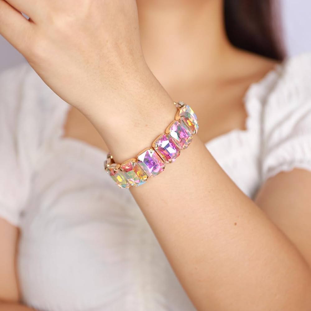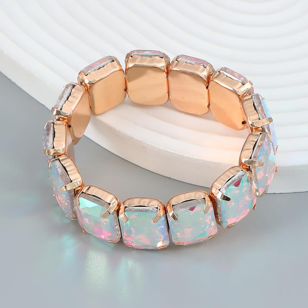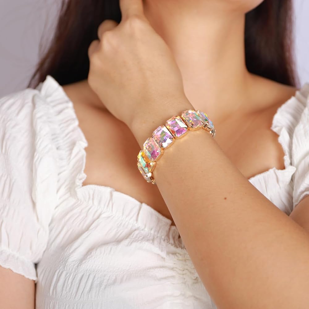 Xerling Wedding Square Crystal Stretch Bracelets Sparkle Elastic Hand Chain Bangle Bracelets for Women Teen Girls