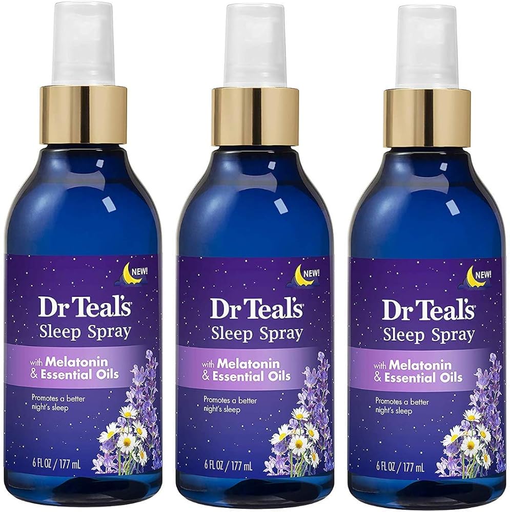 Dr Teal's multi-purpose Sleep Spray contains melatonin, a hormone that helps regulate sleep and wake cycles. Dr Teal's Sleep Spray is scented with a soothing blend of lavender and chamomile essential oils to help promote a better night's sleep. Use Dr Teal's multi-purpose Sleep Spray at bedtime in 4 different ways to enhance your sleep routine: in the shower; on your body; on your pillows & bedding; in your bedroom. Pack contains 3 bottles for 18 Fl Oz total.