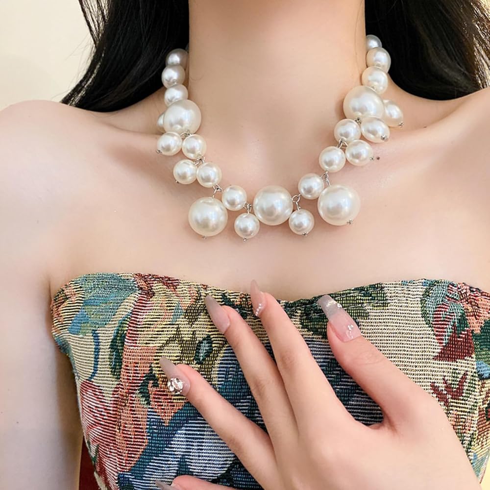 Pearl Choker Necklace:This pearl necklace adopts an exaggerated design style, which is very fashionable and personalized, suitable for daily wear.