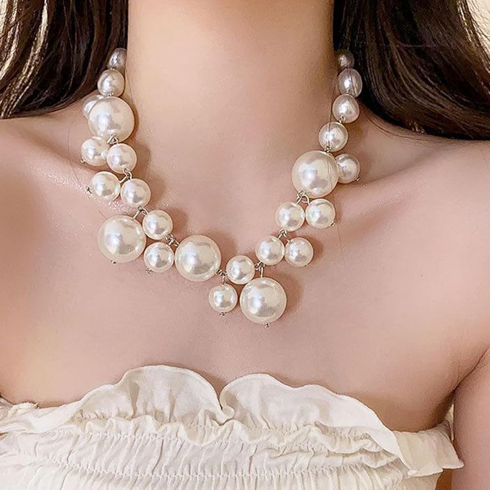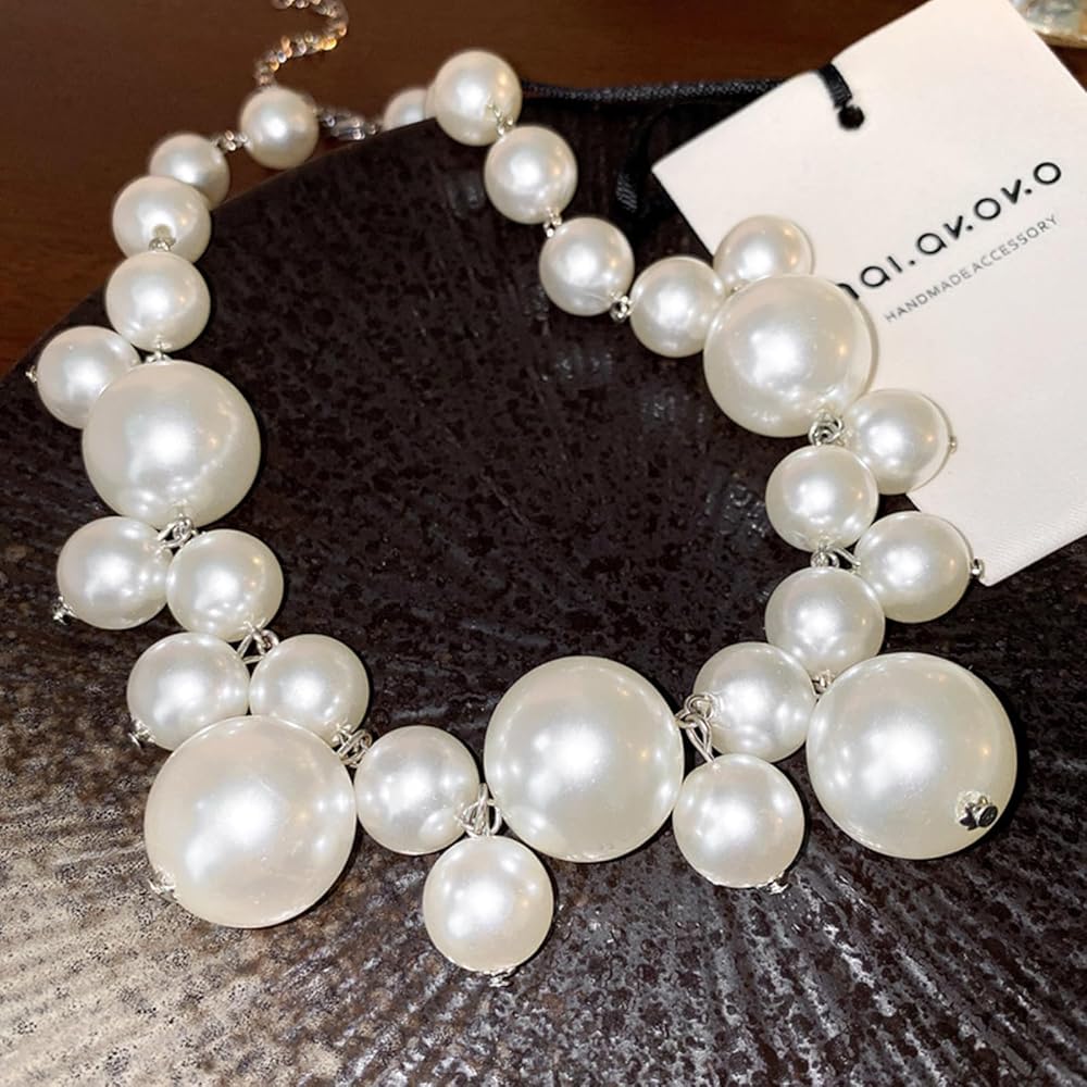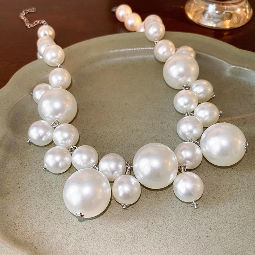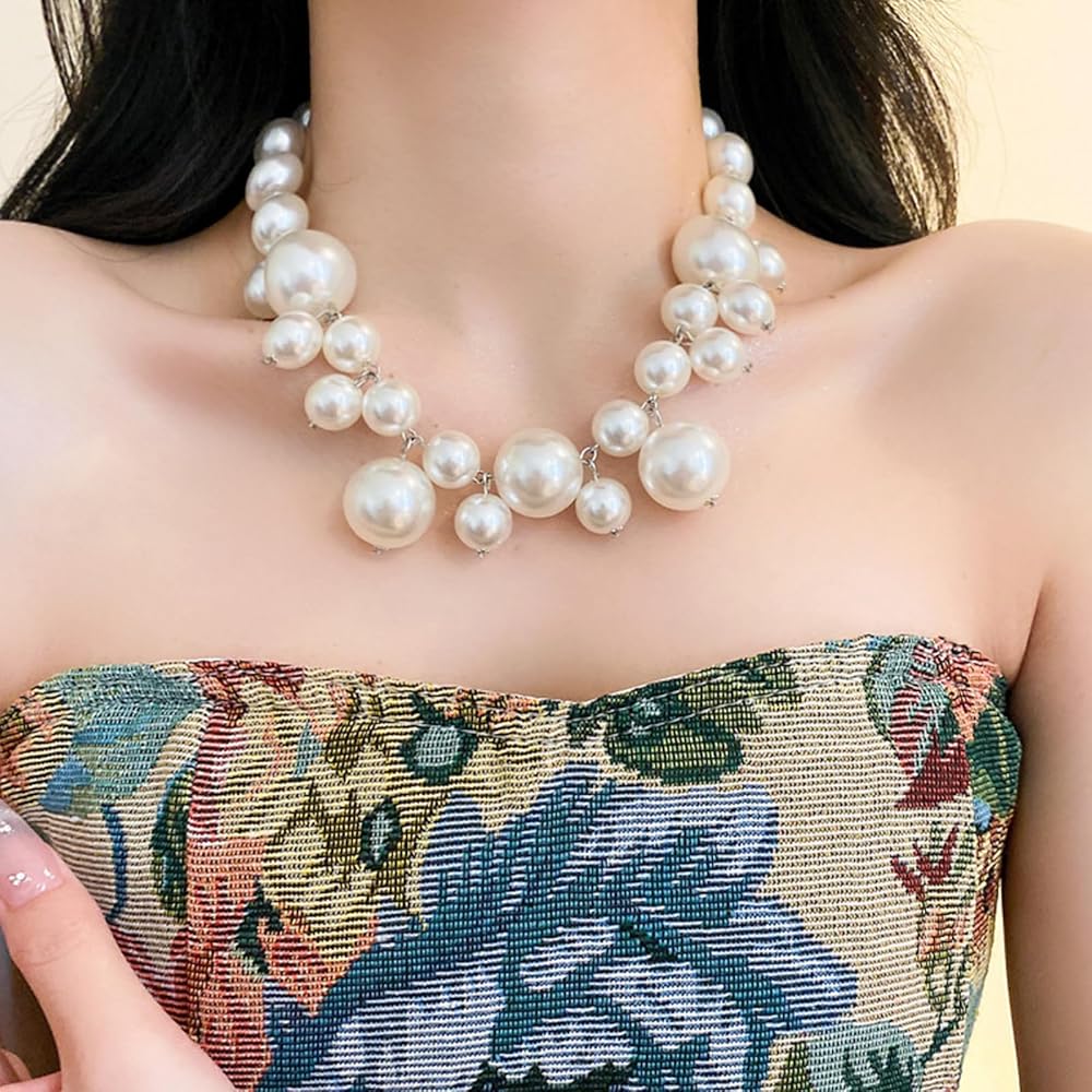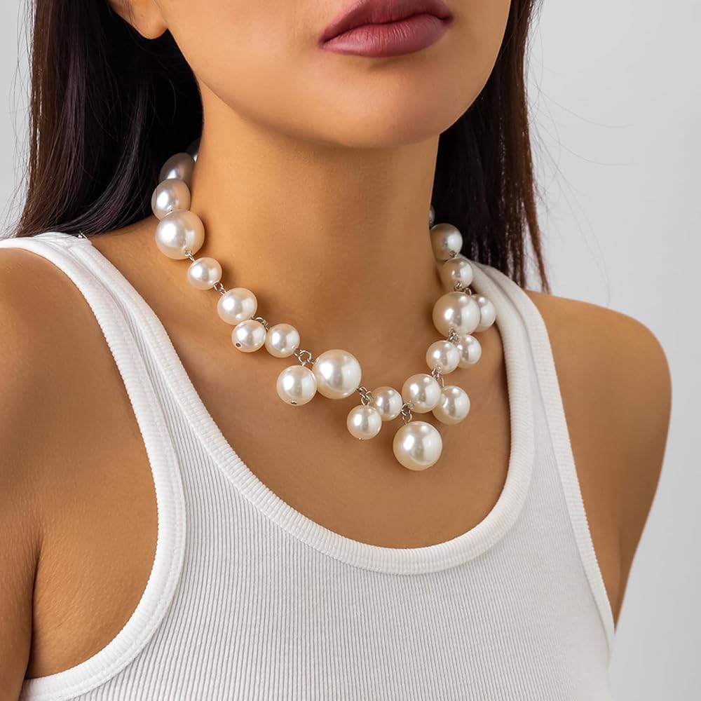 Chunky Pearl Necklace:This pearl necklace is made of pearls of various sizes, with a very stylish design that looks like tears from a distance, beautiful and fashionable.
