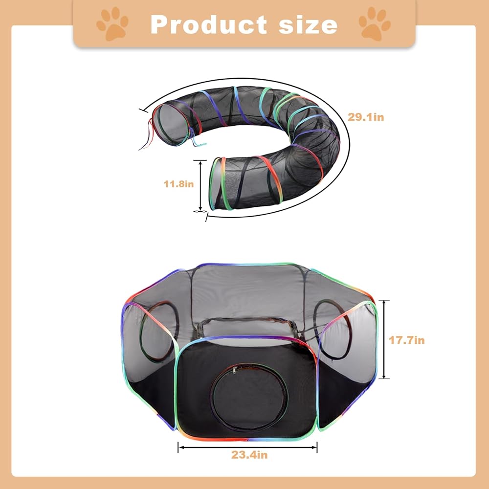 Cat Enclosure Outdoor Cat Playpen, Portable Cat Tents for Outside, Foldable Cat Tunnel for Indoor Cats,Kitty and Small Animals,Tents Enclosure with Carry Bag, Rainbow Color