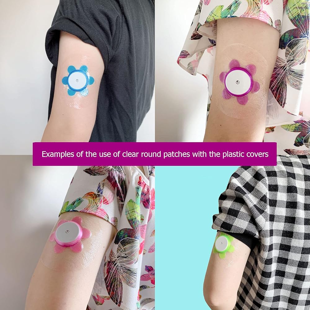 Libre 2 Adhesive Patches,50 Pack Clear Patches with 35mm Diameter Hole,Work with Our Flower and Heart Shape Plastic Shield Designed Specially for Libre 2 (Transparent Pactches ONLY, 50pcs)