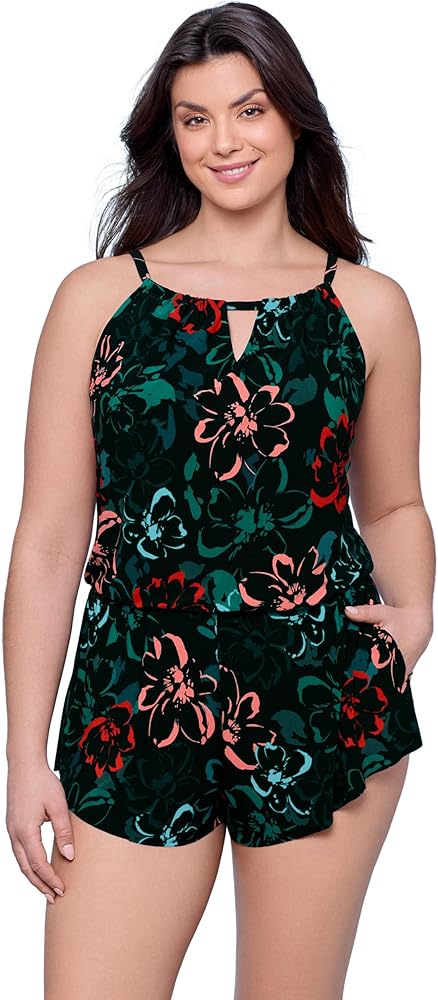 Aqua Green is a solution-oriented swimwear collection of classic silhouettes focused on comfort, coverage, and versatility. This collection is designed to support and flatter all women. Move freely and focus on fun in the Christopher Blouson Romper. With its full coverage design and adjustable straps, this blouson style romper provides carefree comfort and security as you move through your day.