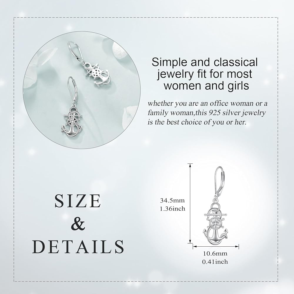 💎【Sailor Earrings Material 】Anchor leverback earrings is made of 100% 925 sterling silver, which is nickel-free, lead-free and cadmium-free. It is hypoallergenic so you no need to worry it will turn green or black to your beautiful ears!