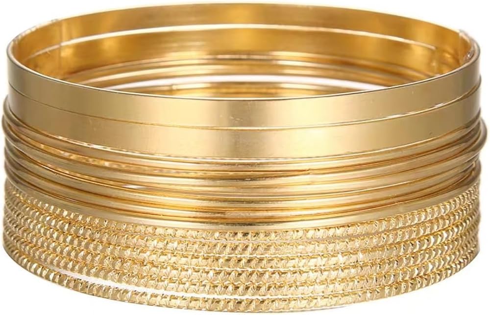 ❤Gold Layer bangle set for girls❤ High-quality eco-friendly alloy,Long-lasting and bright, strong anti-tarnish performance,lead-free and nickel-free,I believe you will like our bangle set very much.