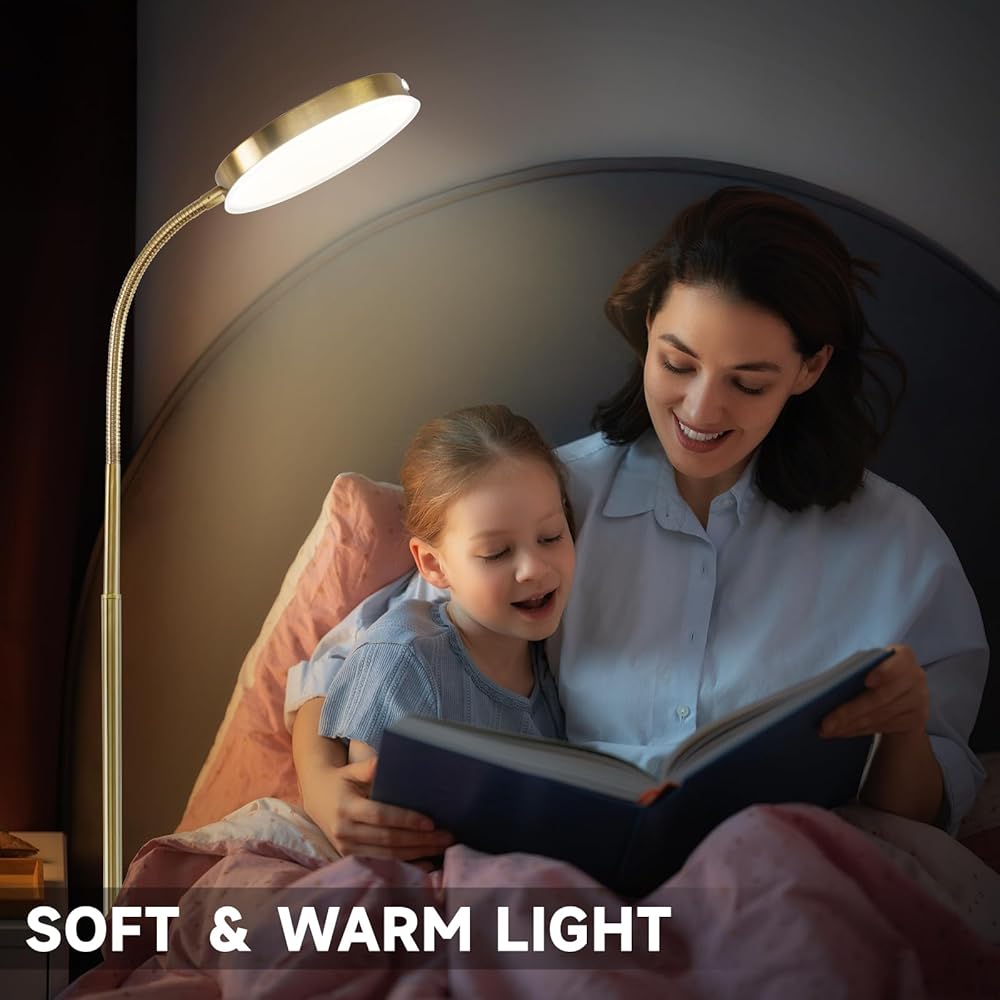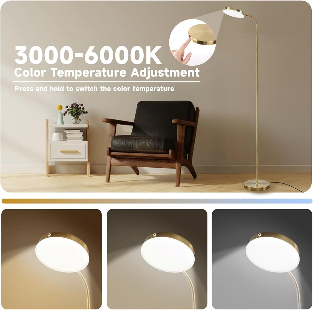 【UPGRADED TOUCH CONTROL LED FLOOR LAMP】:Enhanced with a touch control feature on the lampshade, our LED floor lamp allows you to adjust brightness levels effortlessly. With a simple press, easily find and set the perfect brightness and color temperature for reading, working, relaxing, makeup application, crafting, or sleeping. Enjoy convenience at your fingertips with precise control for every task and ambiance.