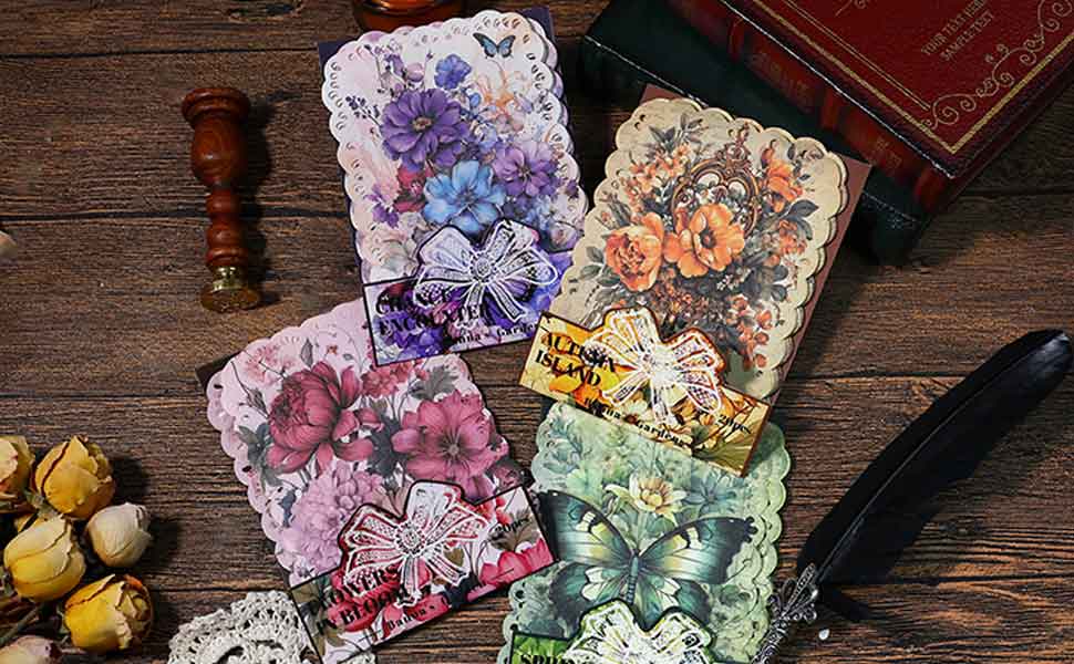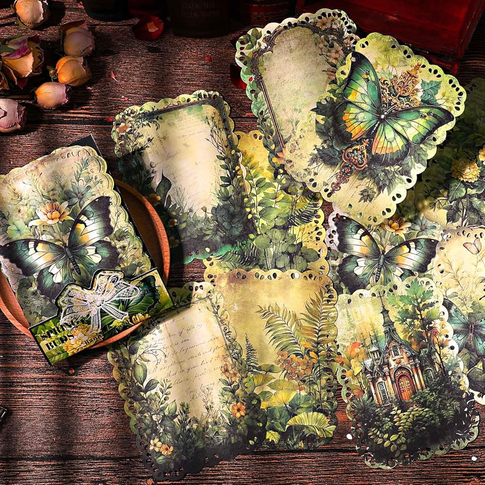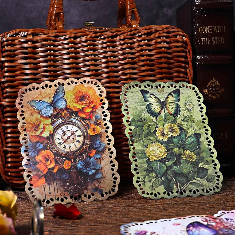 Distinctive Design - Stand out with our uniquely designed lace-shaped scrapbook paper, capturing the essence of American vintage style. Each sheet features a charming combination of botanicals, florals, butterflies, and castles, adding a touch of whimsical elegance to all your crafting projects.