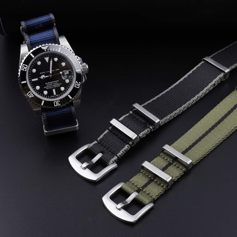 Our watch straps are crafted from advanced seat belt nylon weaving, which makes them super smooth and the feel is very similar to an automotive seat belt. It is silky smooth, with a more luxurious luster and as strong as a seat belt;