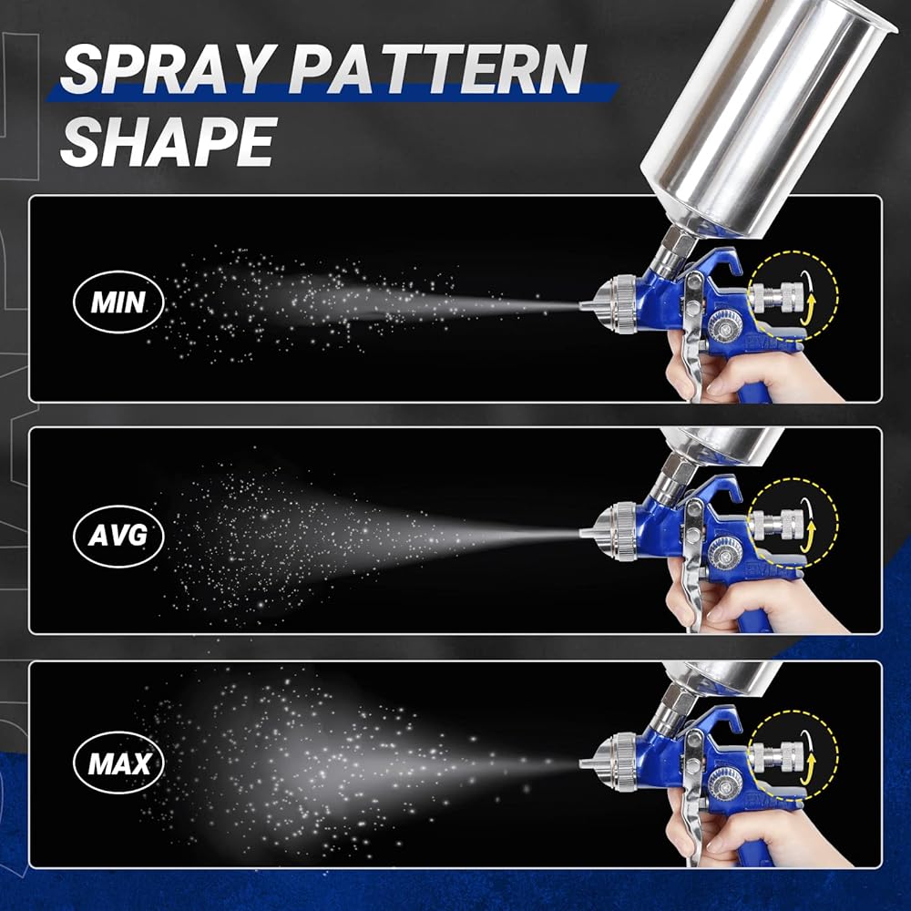 【FUNCTION】- The HVLP spray paint gun is flexible in the way it is handled with the control knobs for full adjustment- travel of the fluid needle/spray pattern shape