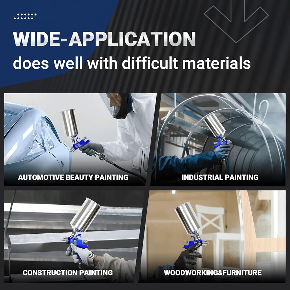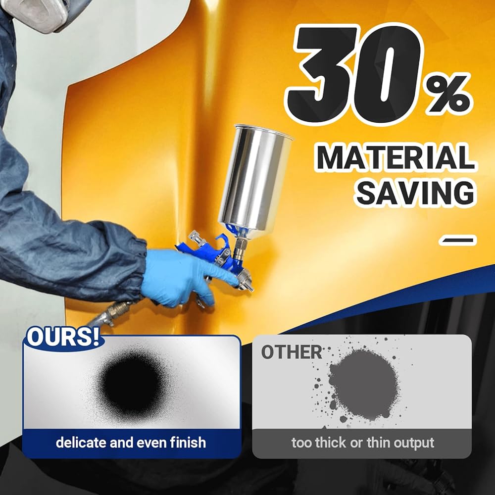【ADVANTAGE】- HVLP spray gun (High Volume Low Pressure) provides better transfer efficiency to adhere material properly to the surface of your car. Prevents overspray and saves up to 25-30 material