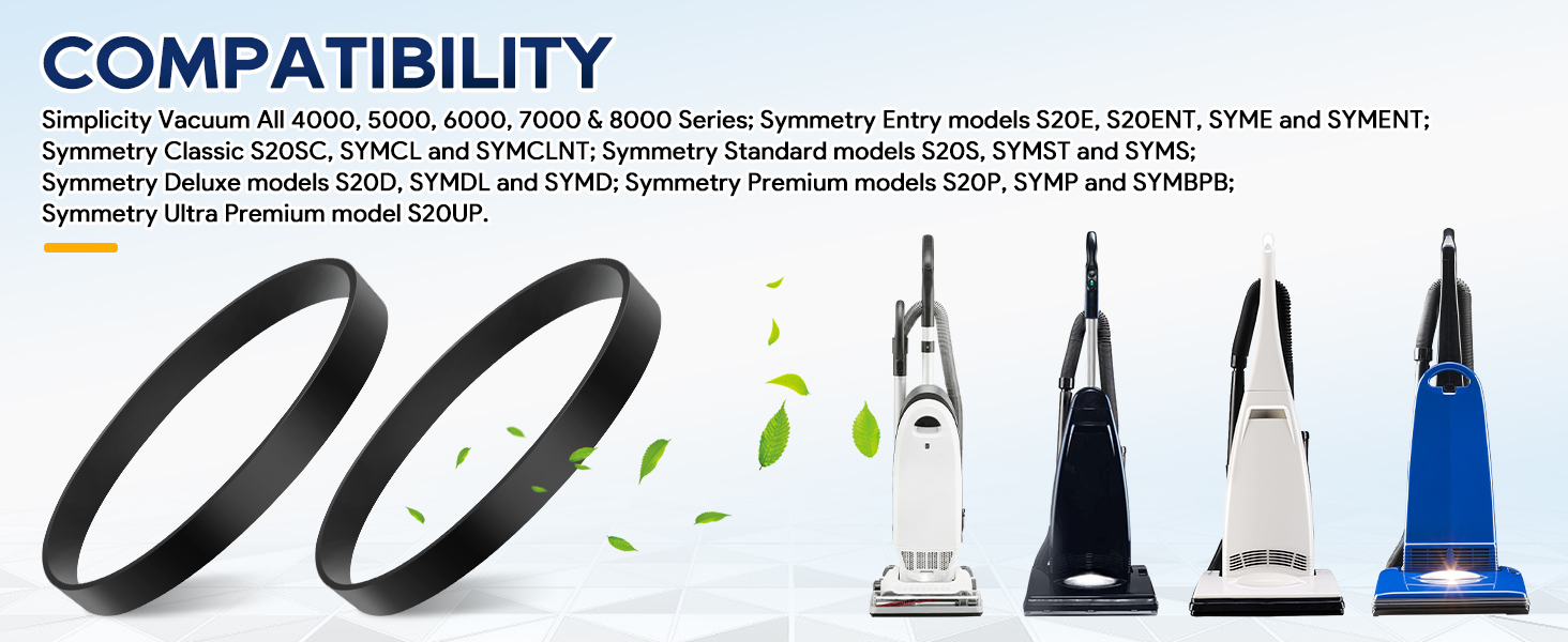 【COMPATIBILITY】 These vacuum belts are designed for Simplicity Vacuum All 4000, 5000, 6000, 7000 & 8000 Series; Symmetry Entry models S20E, S20ENT, SYME and SYMENT; Symmetry Classic S20SC, SYMCL and SYMCLNT; Symmetry Standard models S20S, SYMST and SYMS; Symmetry Deluxe models S20D, SYMDL and SYMD; Symmetry Premium models S20P, SYMP and SYMBPB; Symmetry Ultra Premium model S20UP. Replace Part SB7 / SB6 / SB6-2 (SB62) / B014-0714 (B0140714)