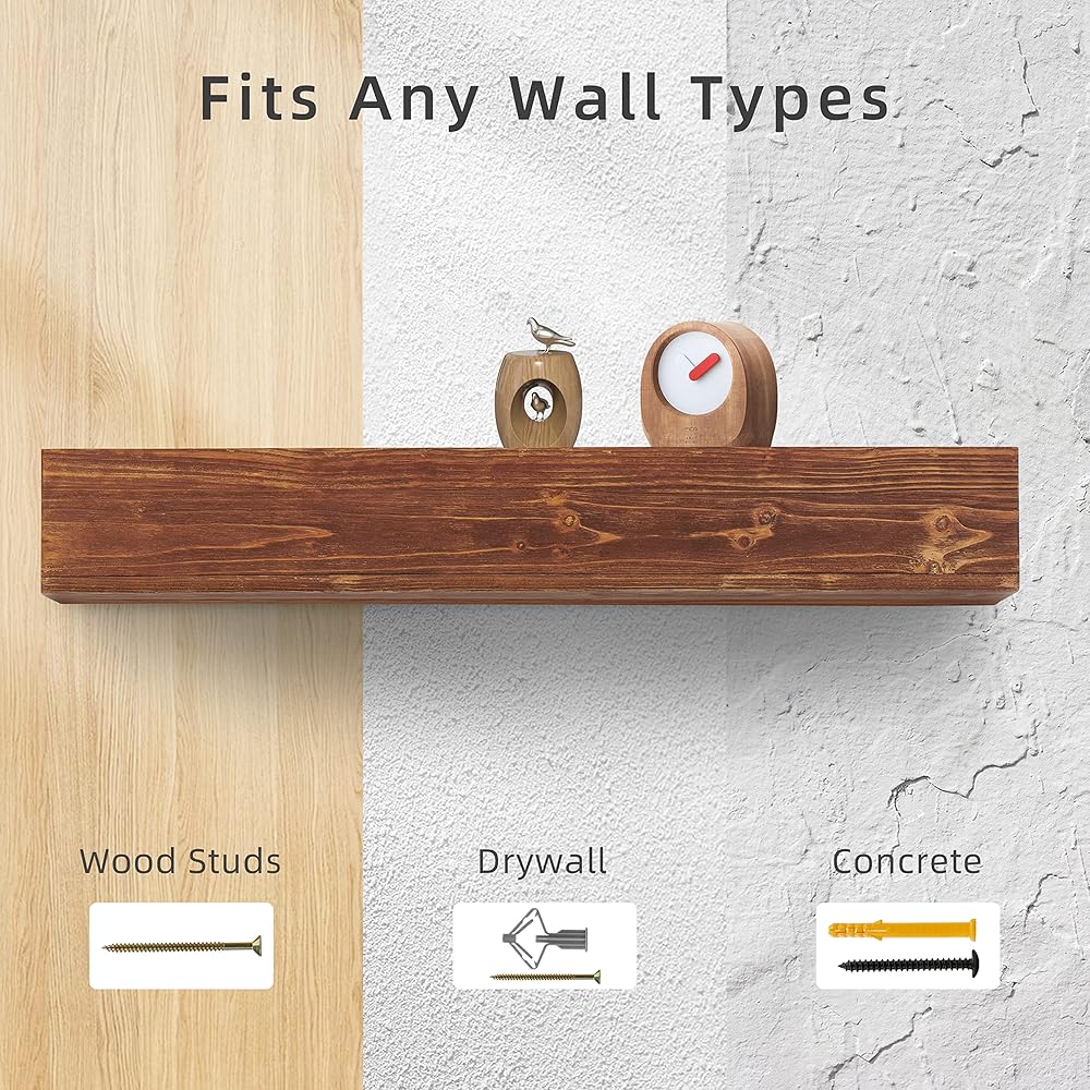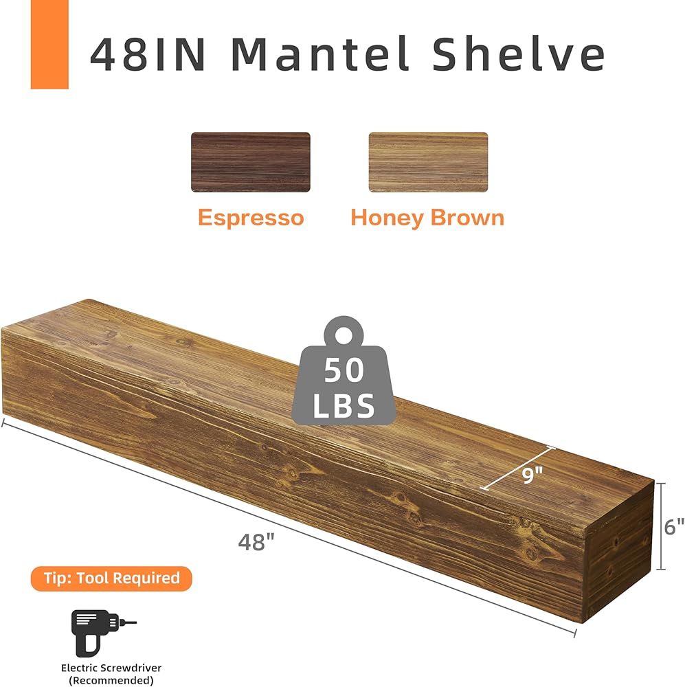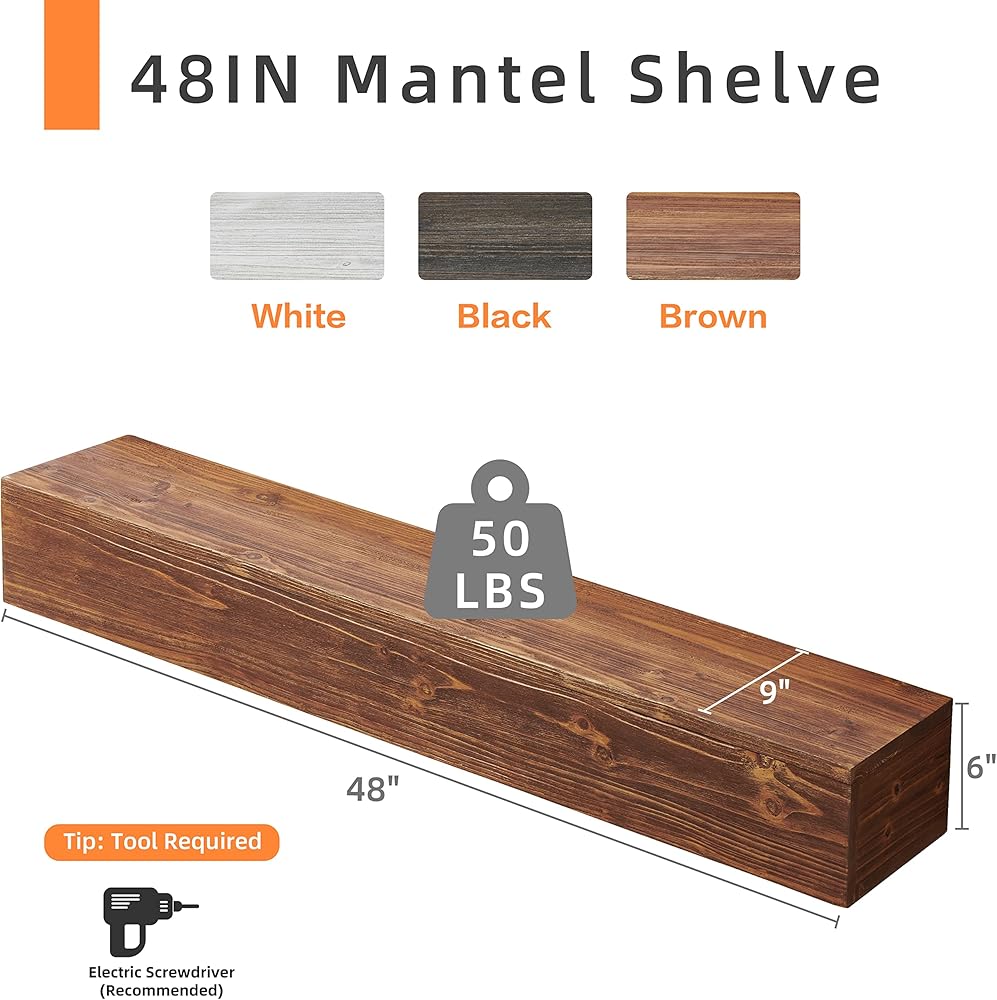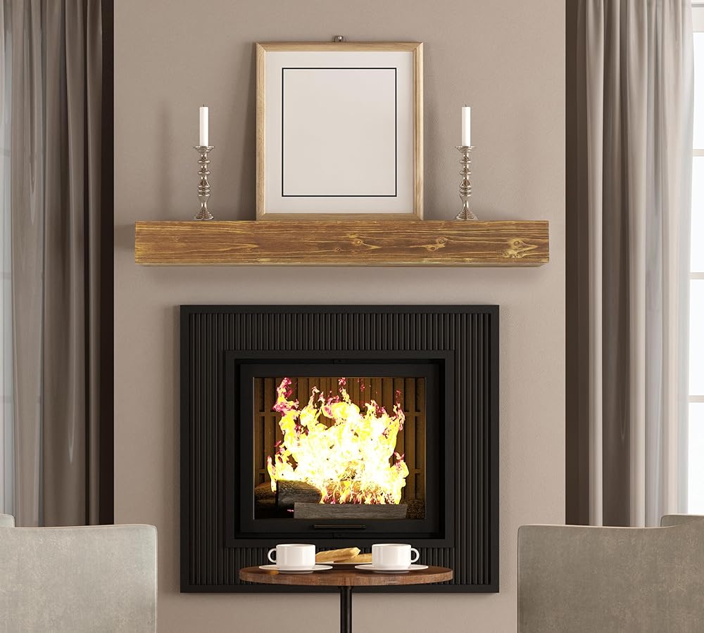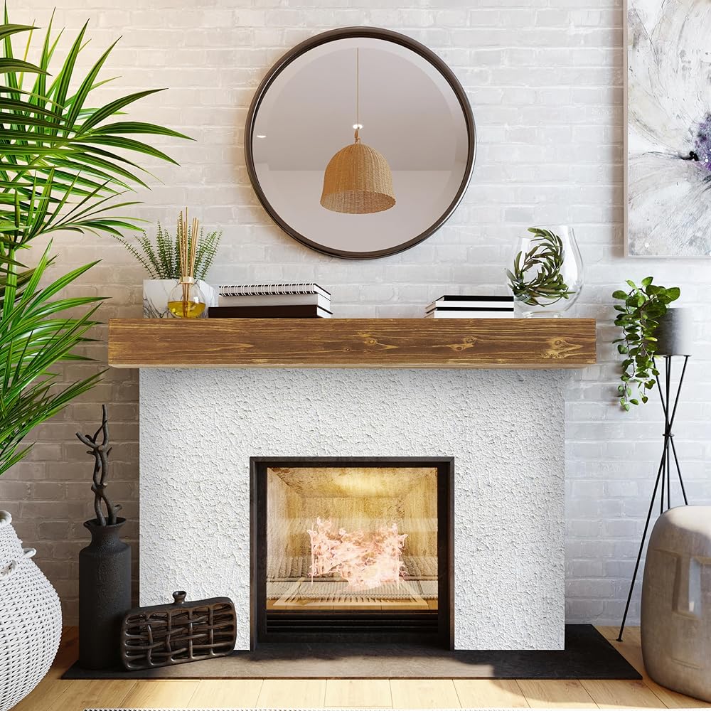 [RUSTIC WOOD MATERIAL]: Wood Fireplace Mantel is made of solid rustic cedar wood; Brushed surface finish with water-based coating; add a rustic touch to living rooms or kitchens