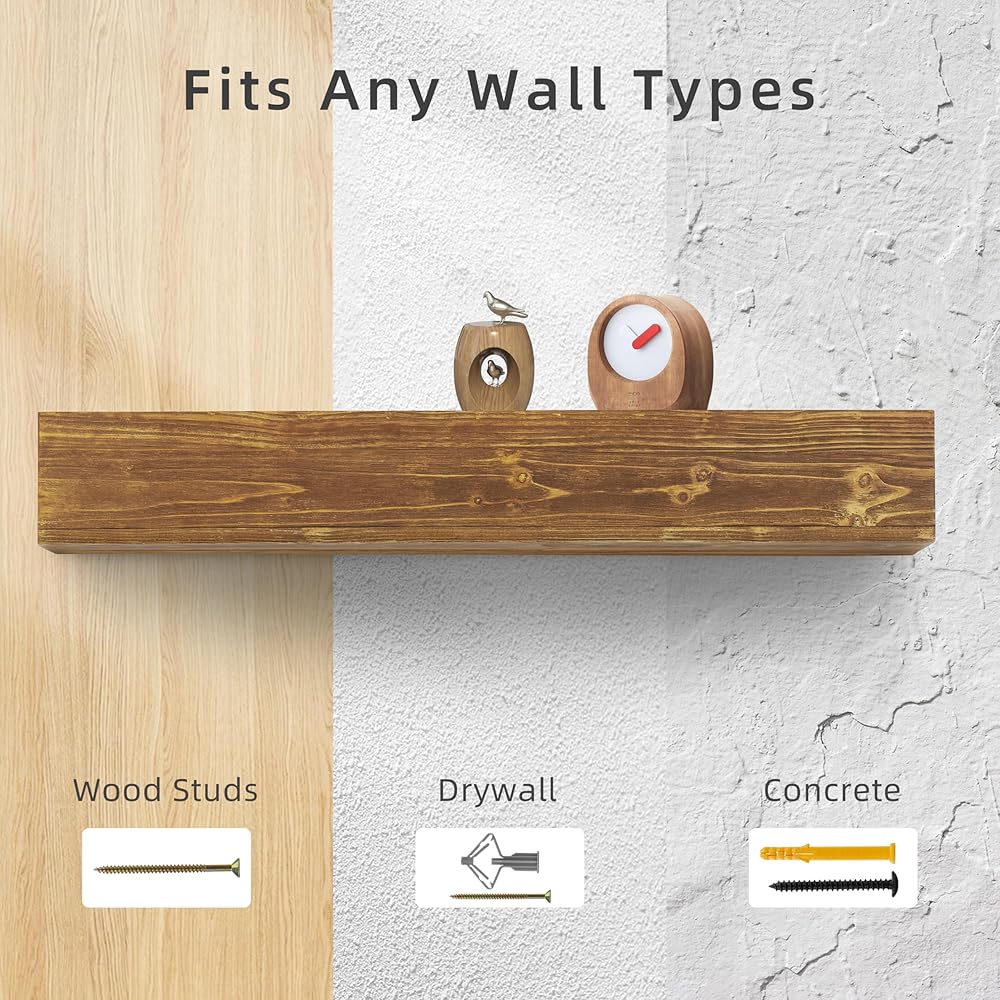 [STURDY FLOATING SHELVES]: 9" Thickness firm structure, farmhouse shelf static Load is 50 lbs, ensure that no lean or sag during long-term placement