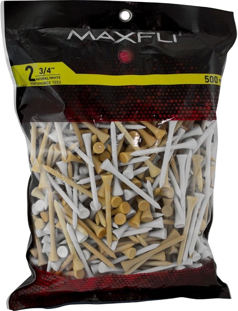Swing for an ace in the tee box when you use the Maxfli 2.75” Natural/White Golf Tees Pack. This wooden tee assortment comes with 500 pieces to last you through multiple rounds of golf. For a more enjoyable day on the course, the longer tee length enables you to pull out your driver head or push the tee further into the ground to accommodate your iron club. Its natural wood and white colors add a simple look to your game.