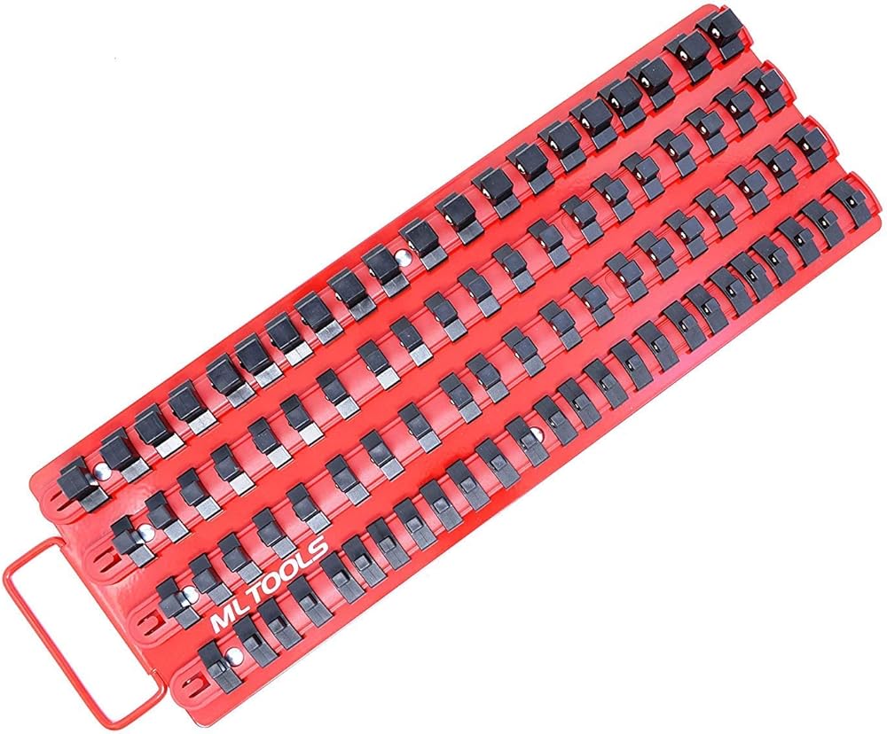 حافظ على المقابس منظمة - قم بترتيب المقابس بشكل أنيق على طول كل سكة مقبس. تحافظ محامل الكرات المحملة من SPRING على كل مشبك على تأمين المقابس للنقل وتمنع فقدان الأداة. قوي وآمن حتى المقابس المقلوبة مقفلة بإحكام.