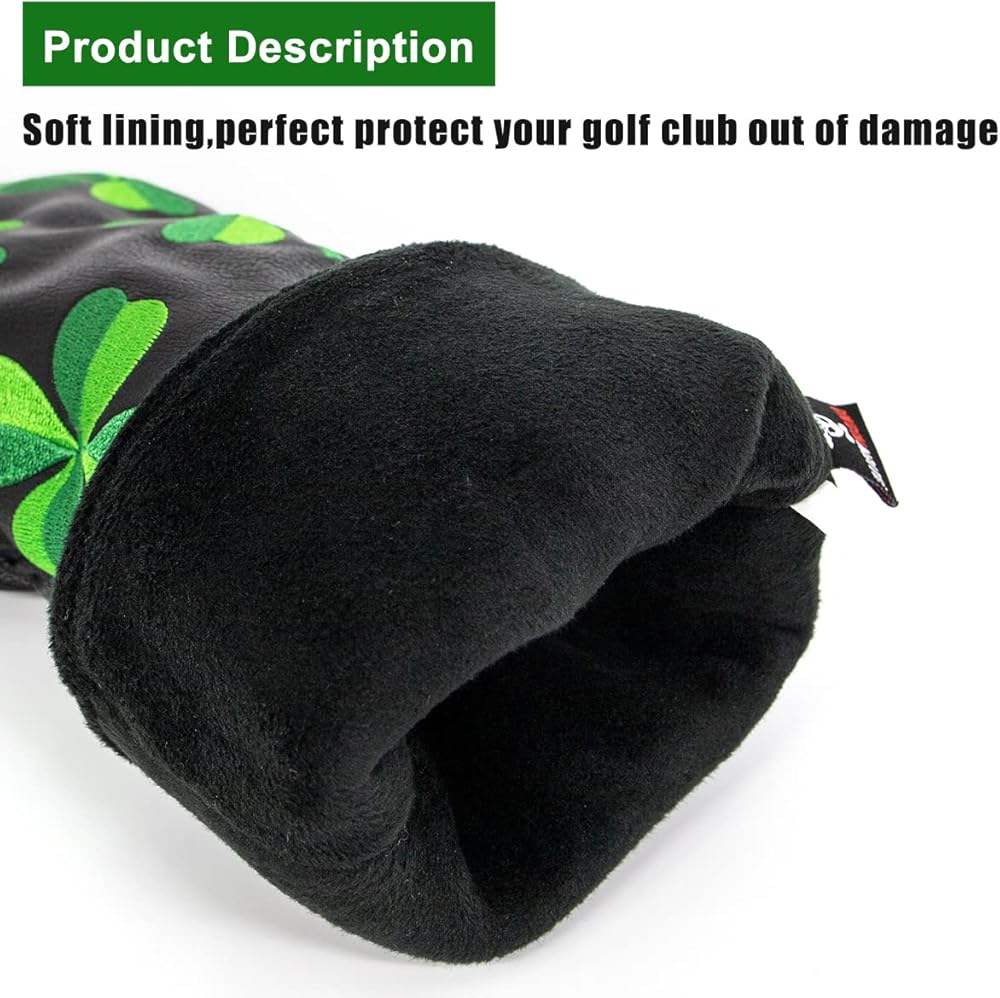 ⛳【Vibrant Design 】 It is embroidered with eye popping animated lucky clover! Will attract compliments / make your foursome jealous! This Funny Golf Club Headcover is the perfect present for any Golfer! Colors for Driver, Fairway, Hybrids, Putters.
