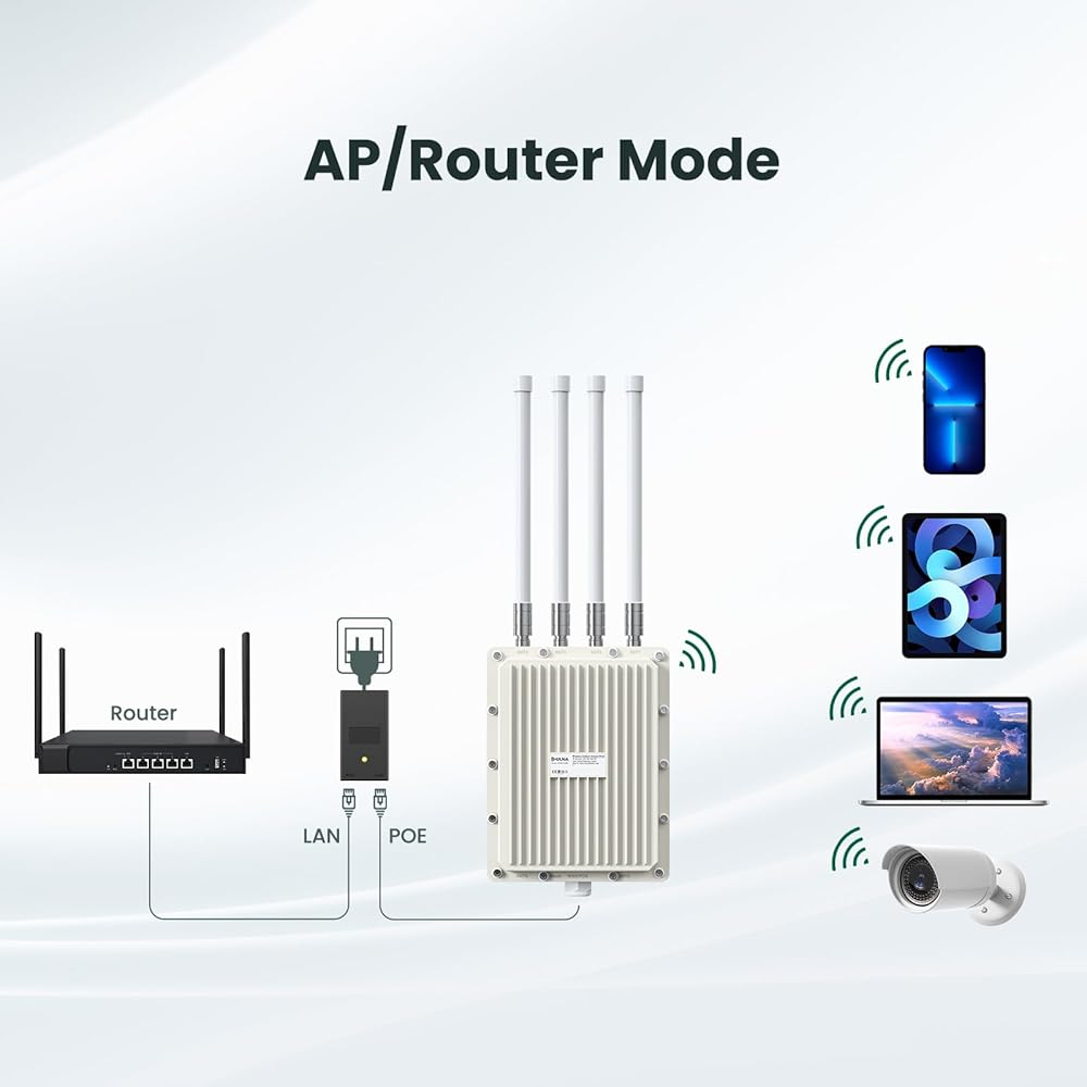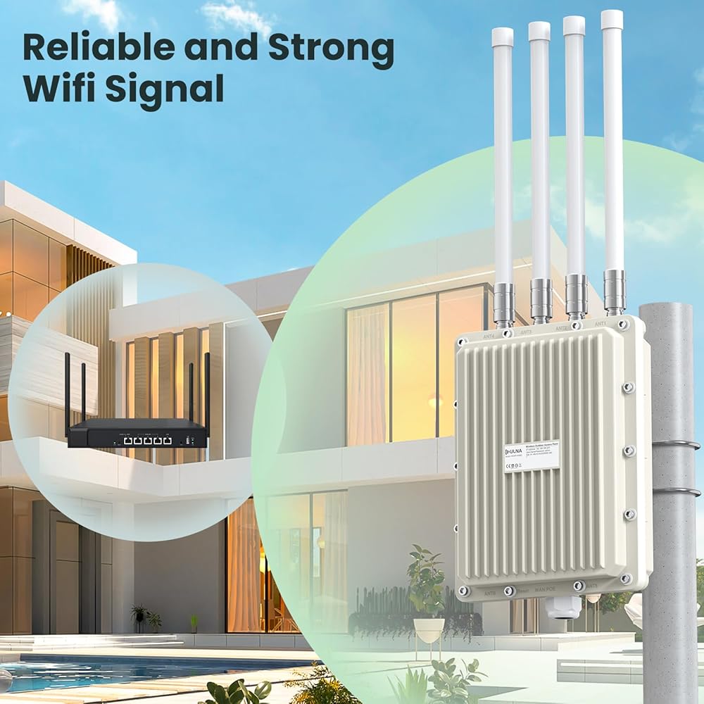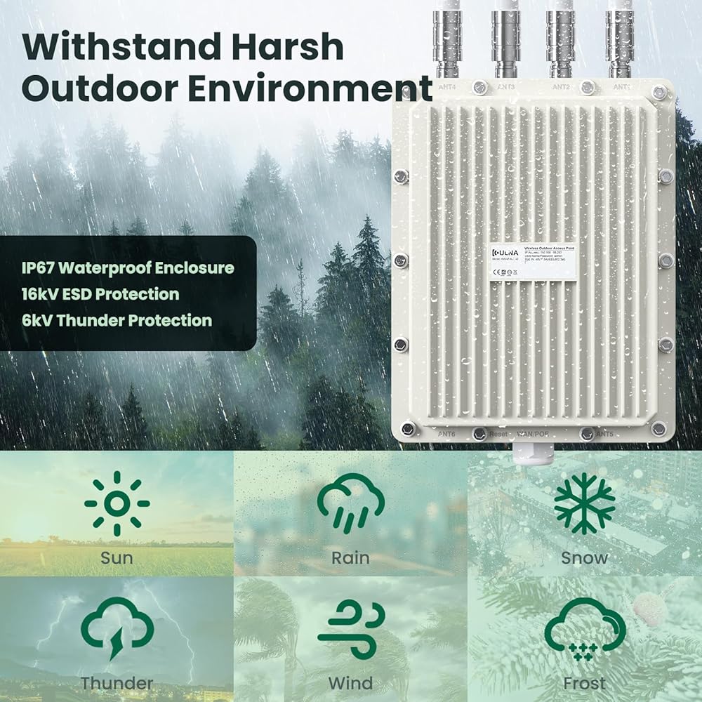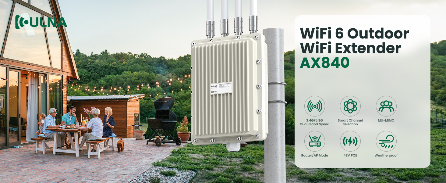 موسع واي فاي خارجي 2024 الأحدث، ULNA AX840 2.4G&5.8G نقطة وصول لاسلكية خارجية طويلة المدى، ما يصل إلى 150 اتصال مع هوائيات قابلة للفصل، يدعم وضع AP/جهاز التوجيه للفناء الخلفي، المرآب، المزرعة