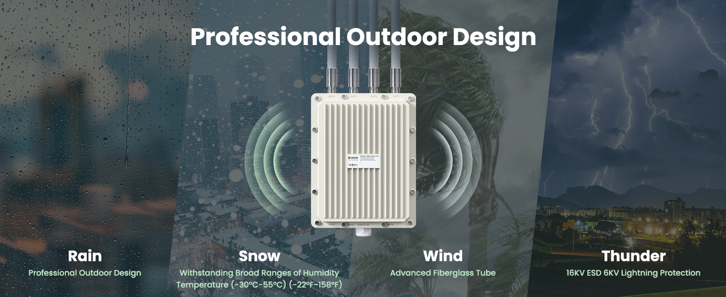 ☀️⛄【موسع واي فاي خارجي مقاوم للطقس】مجهز بغطاء مقاوم للماء IP65، وحماية 16 كيلو فولت من ESD وحماية من البرق 8 كيلو فولت، هذا الموسع اللاسلكي طويل المدى في الهواء الطلق مقاوم للحرارة والتجمد والرعد لتحسين الاستقرار في الظروف القاسية. كان الإعداد سهلاً ويمكن تركيبه في أي مكان تريده.