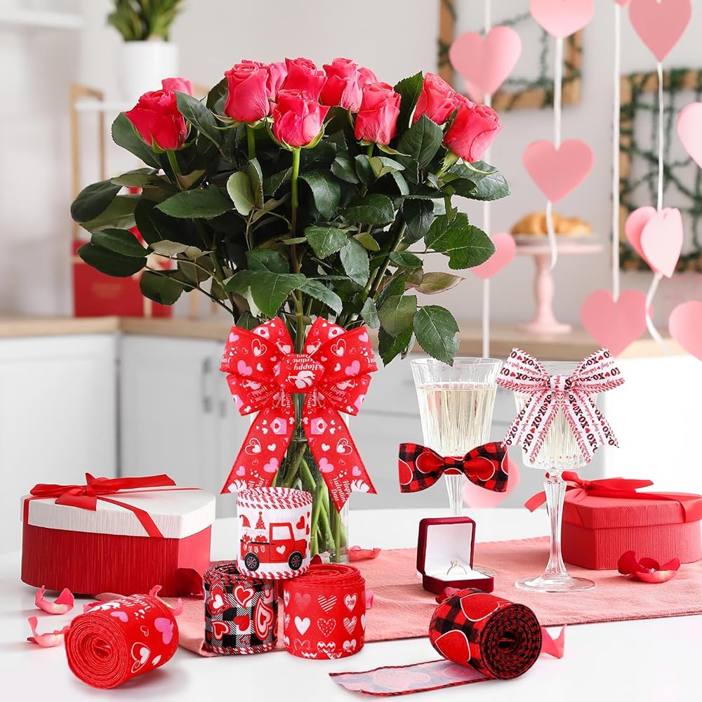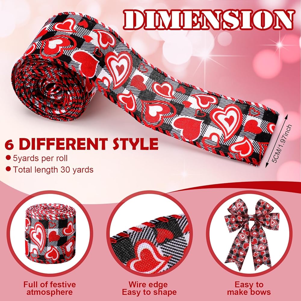 6 Rolls strawberry wired ribbons