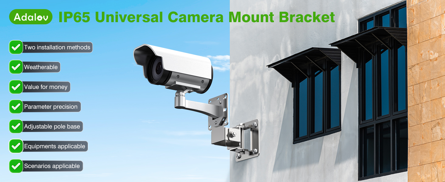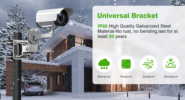 【Heavy Duty & High Quality】The AdaLov Universal Wall or Pole mounting brackets are high quality mounts, constructed of solid steel! The double U-bolts fit around the pole and there is a u-shaped jaw piece with "teeth" that grip the pole to secure the bracket into place! There are 4 units in the package. These mounts held the camera in place with no swaying or shaking! And each unit allows for movement up and down or side to side!